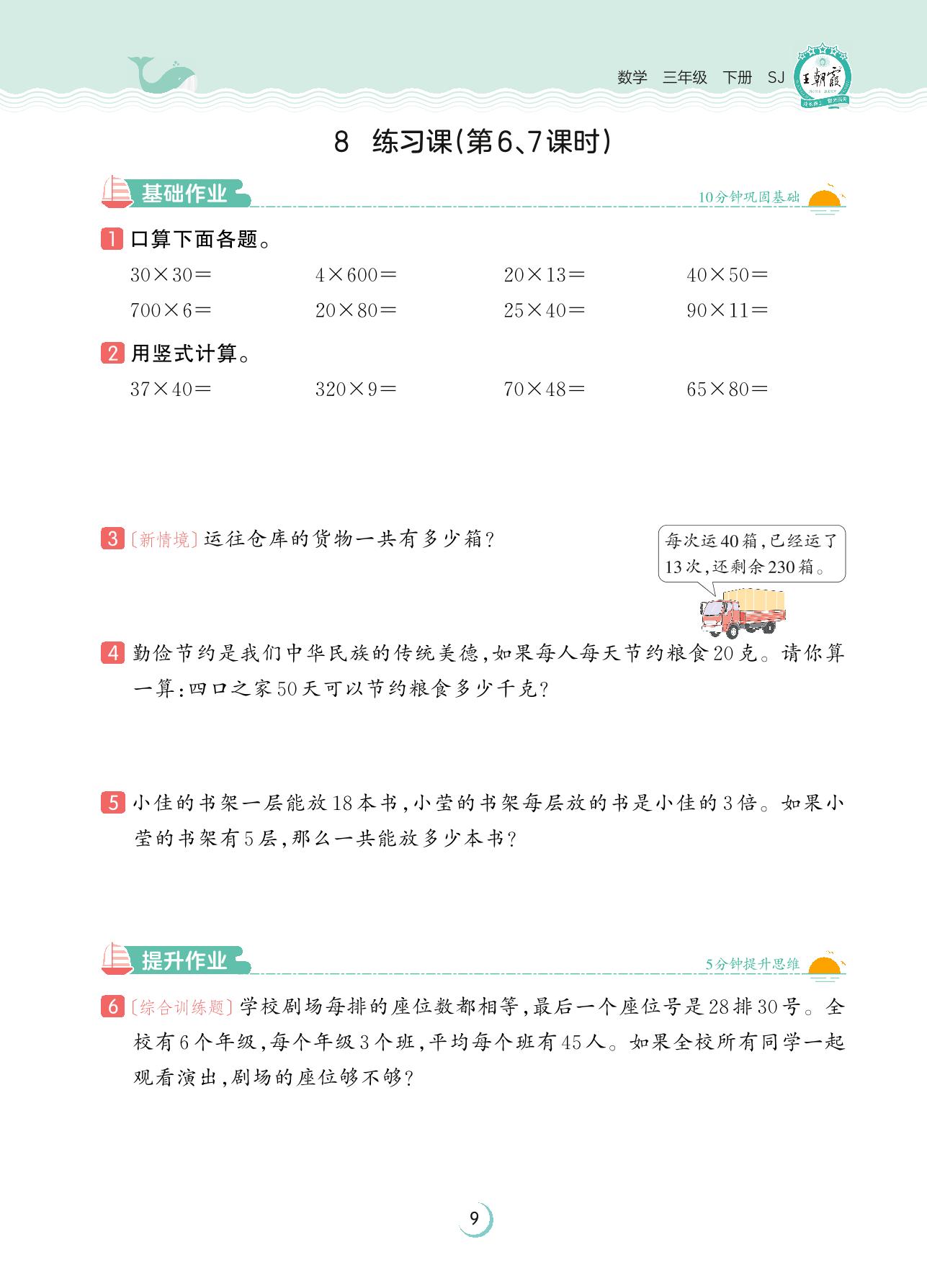 2023下册三年级数学苏教版 第一单元 两位数乘两位数——8 练习课(第6、7课时)