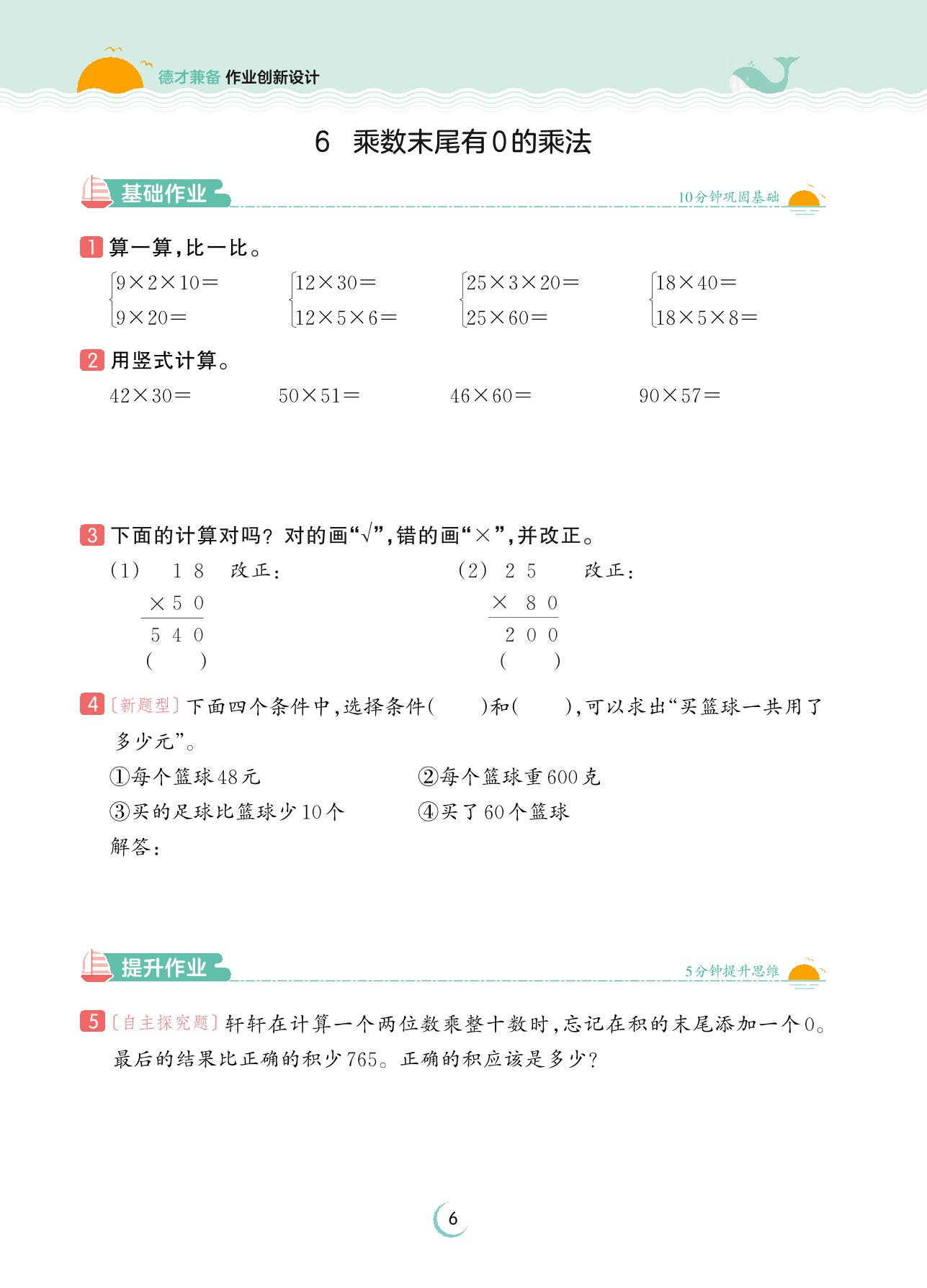 2023下册三年级数学苏教版 第一单元 两位数乘两位数——6 乘数末尾有0的乘法