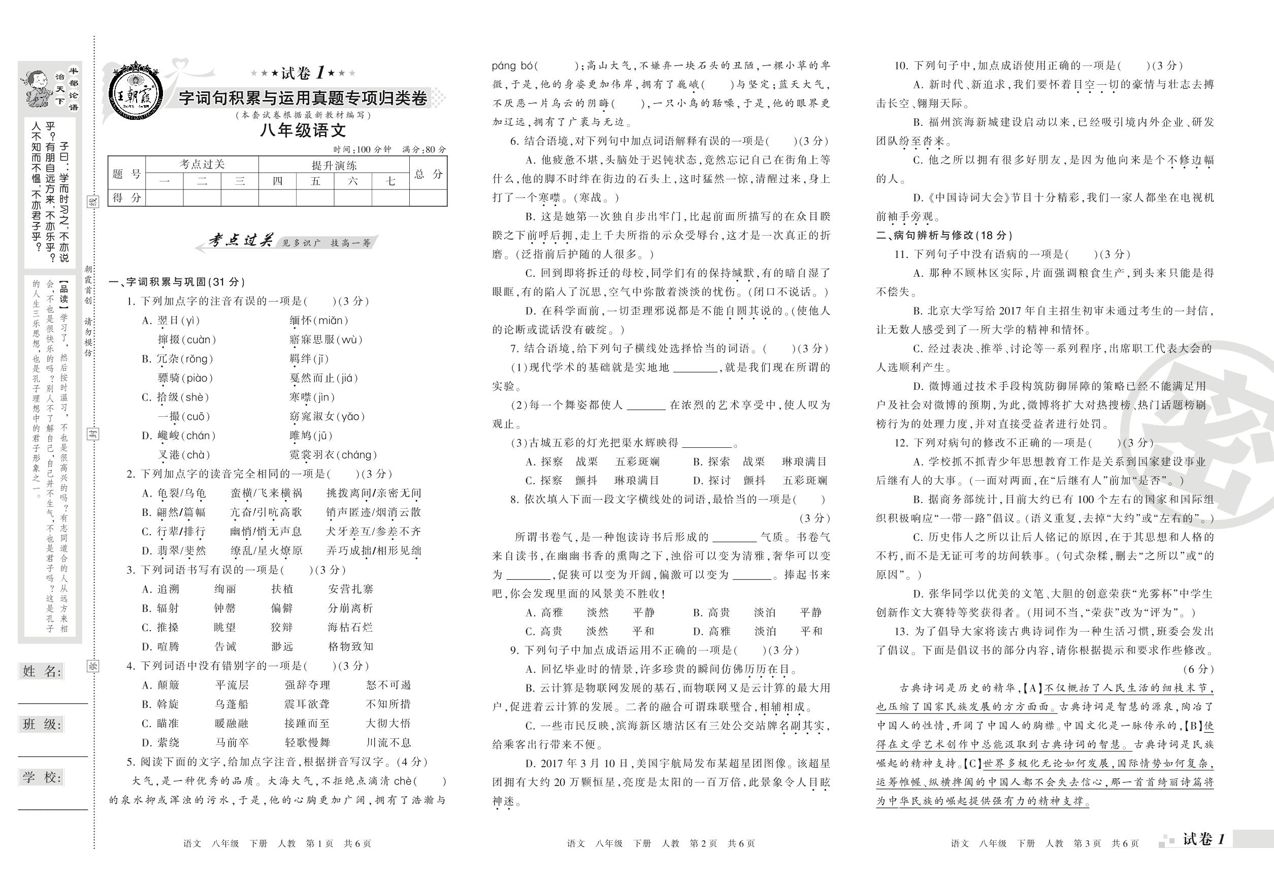王朝霞期末专项卷——字词句积累与运用真题专项归类卷八年级下册语文(人教版)_R210802184934【1】