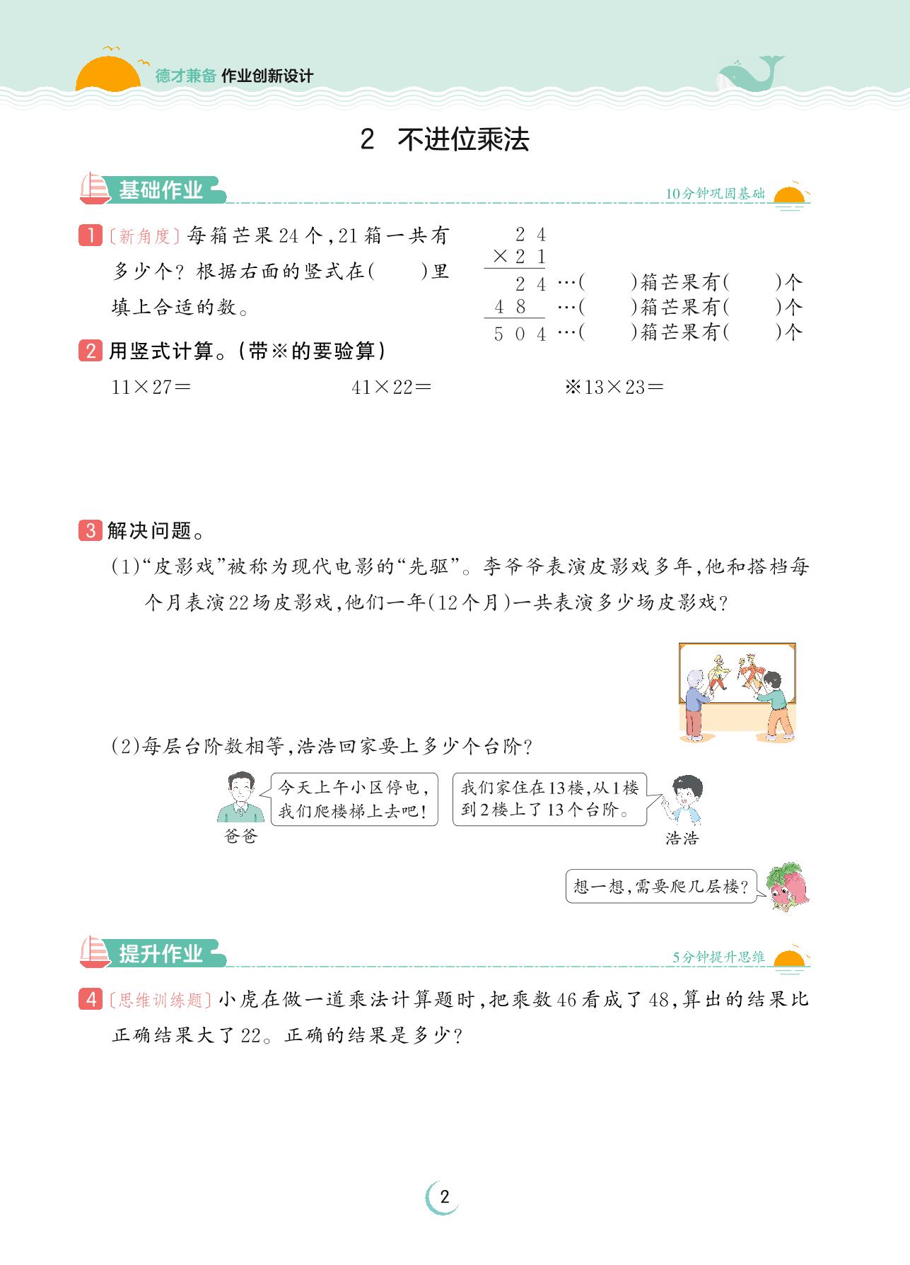 2023下册三年级数学苏教版 第一单元 两位数乘两位数——2 不进位乘法