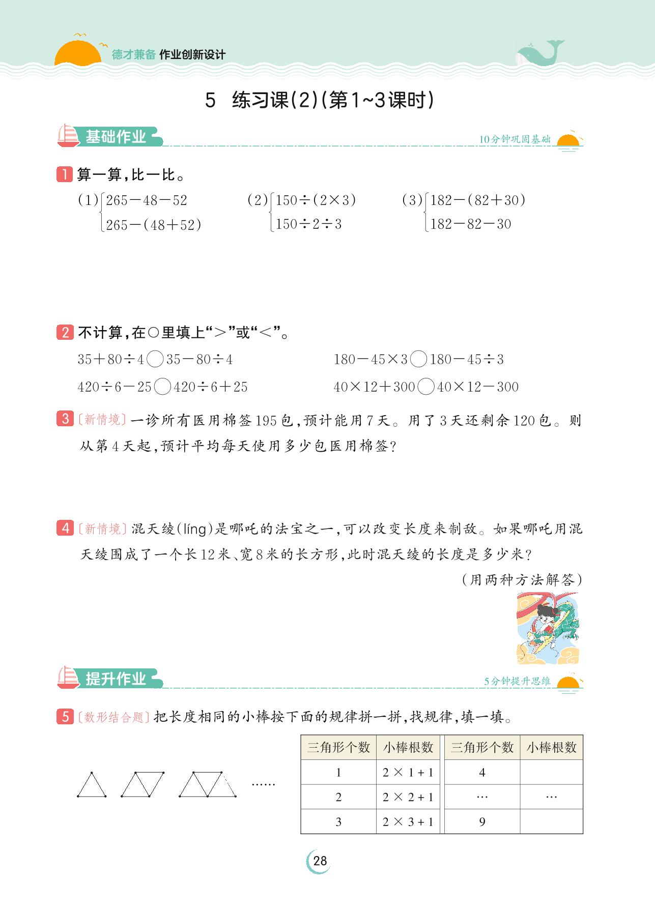 2023下册三年级数学苏教版 第四单元 混合运算——5 练习课(2)(第1~3课时)