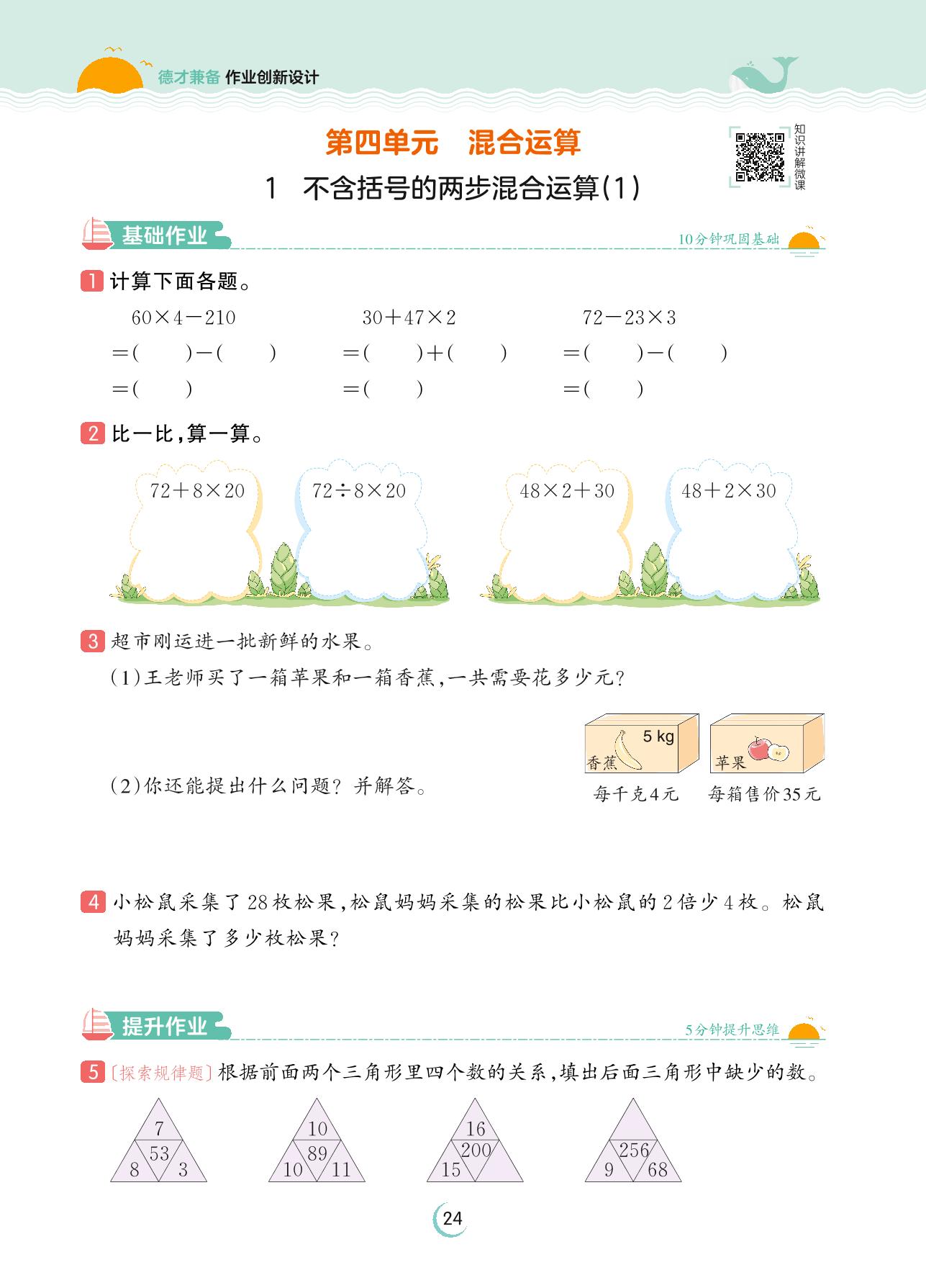 2023下册三年级数学苏教版 第四单元 混合运算——1 不含括号的两步混合运算(1)
