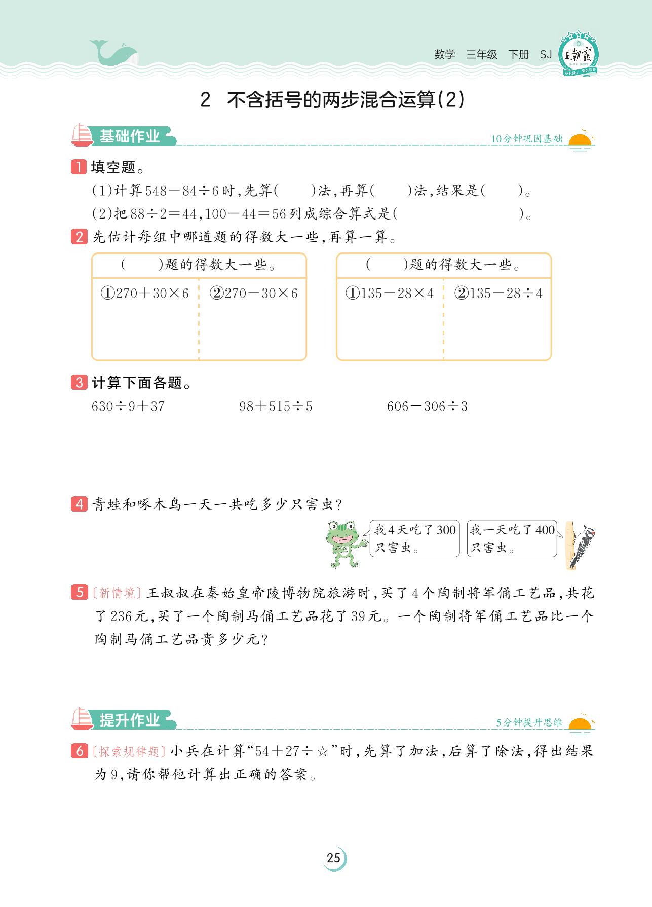 2023下册三年级数学苏教版 第四单元 混合运算——2 不含括号的两步混合运算(2)