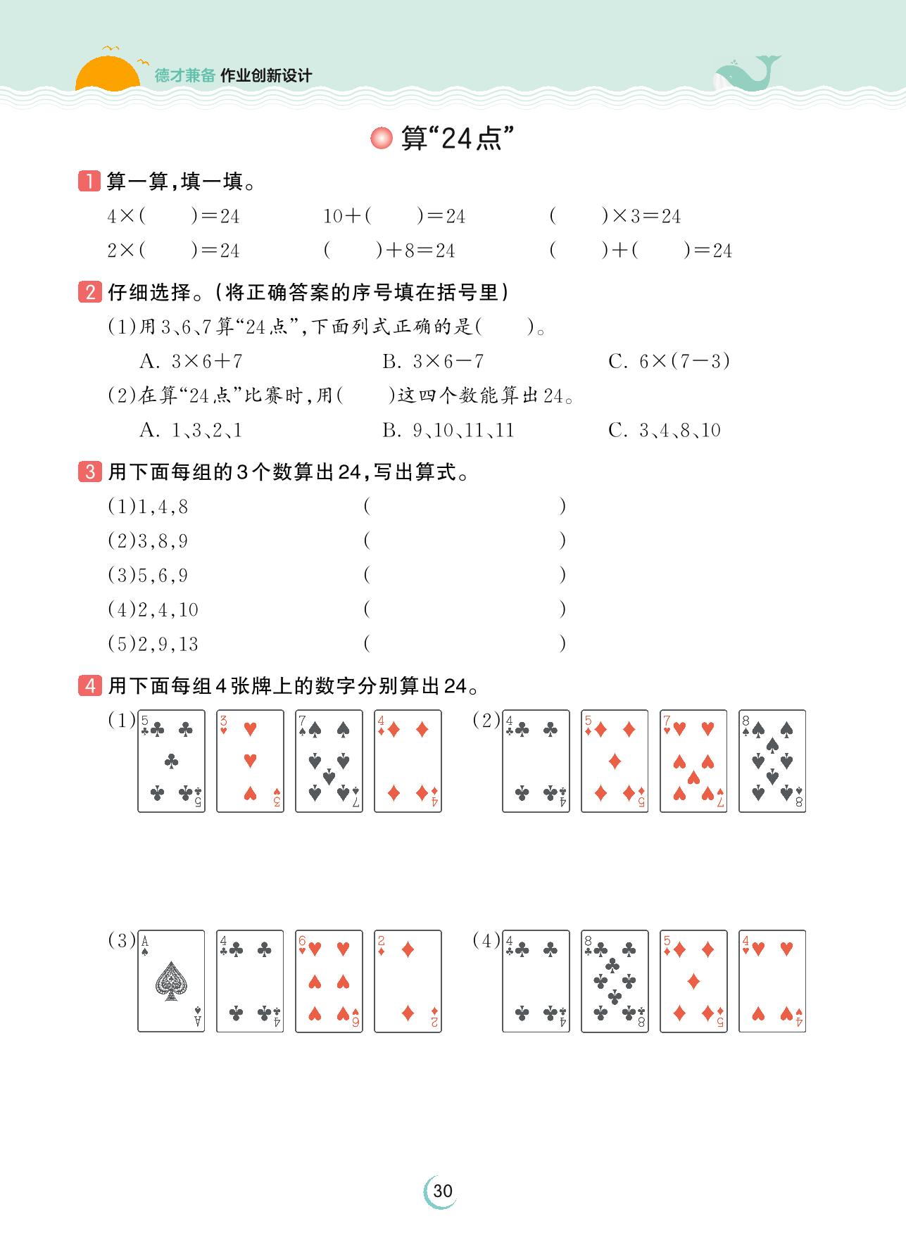 2023下册三年级数学苏教版 第四单元 混合运算——算“24点”