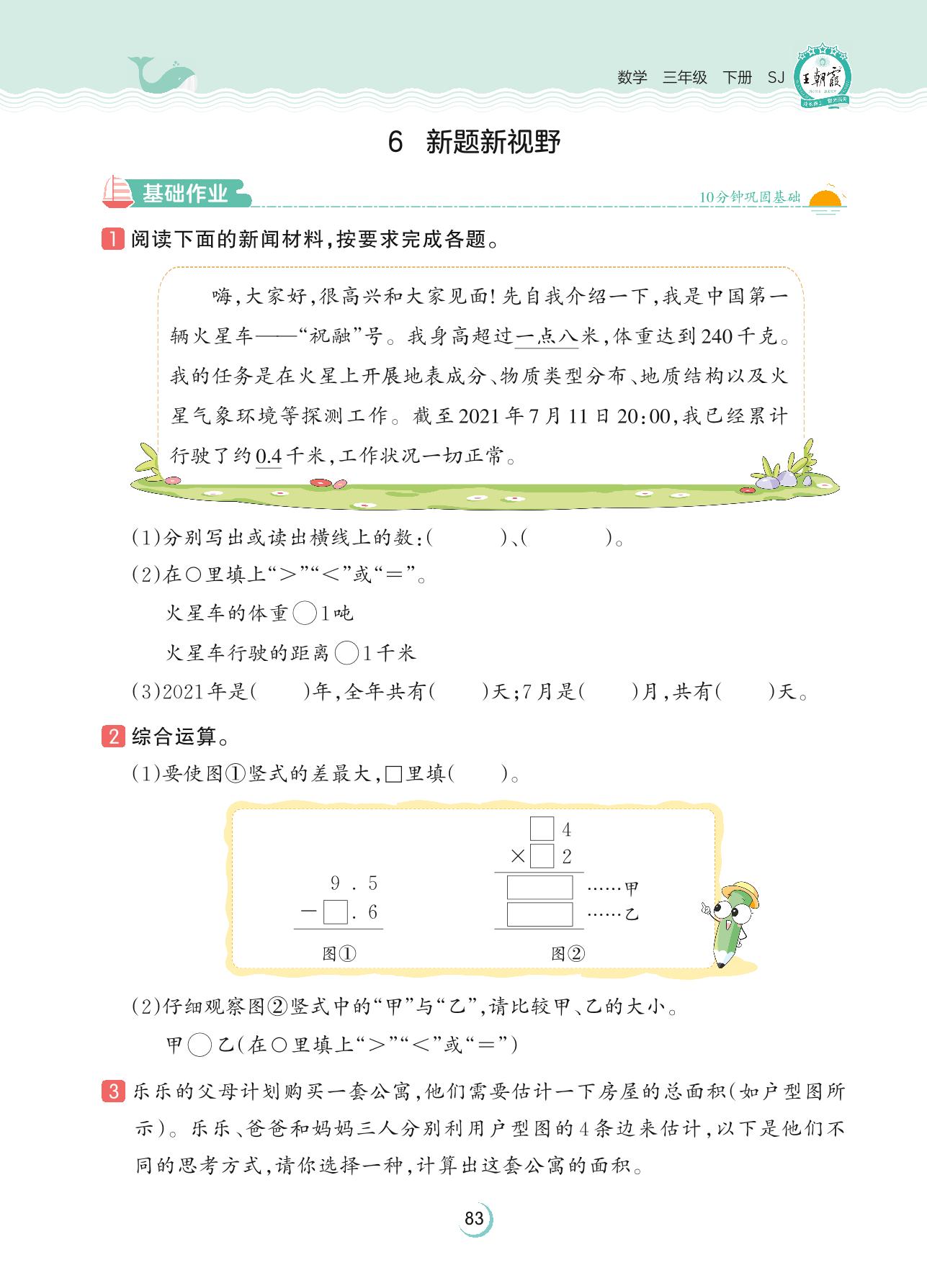 2023下册三年级数学苏教版 第十单元 期末复习——6 新题新视野