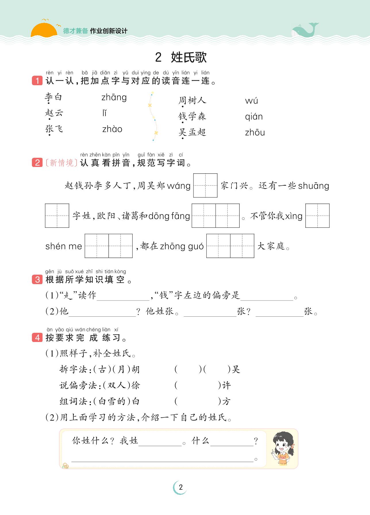 2023下册一年级语文人教版 第一单元 识字——2 姓氏歌