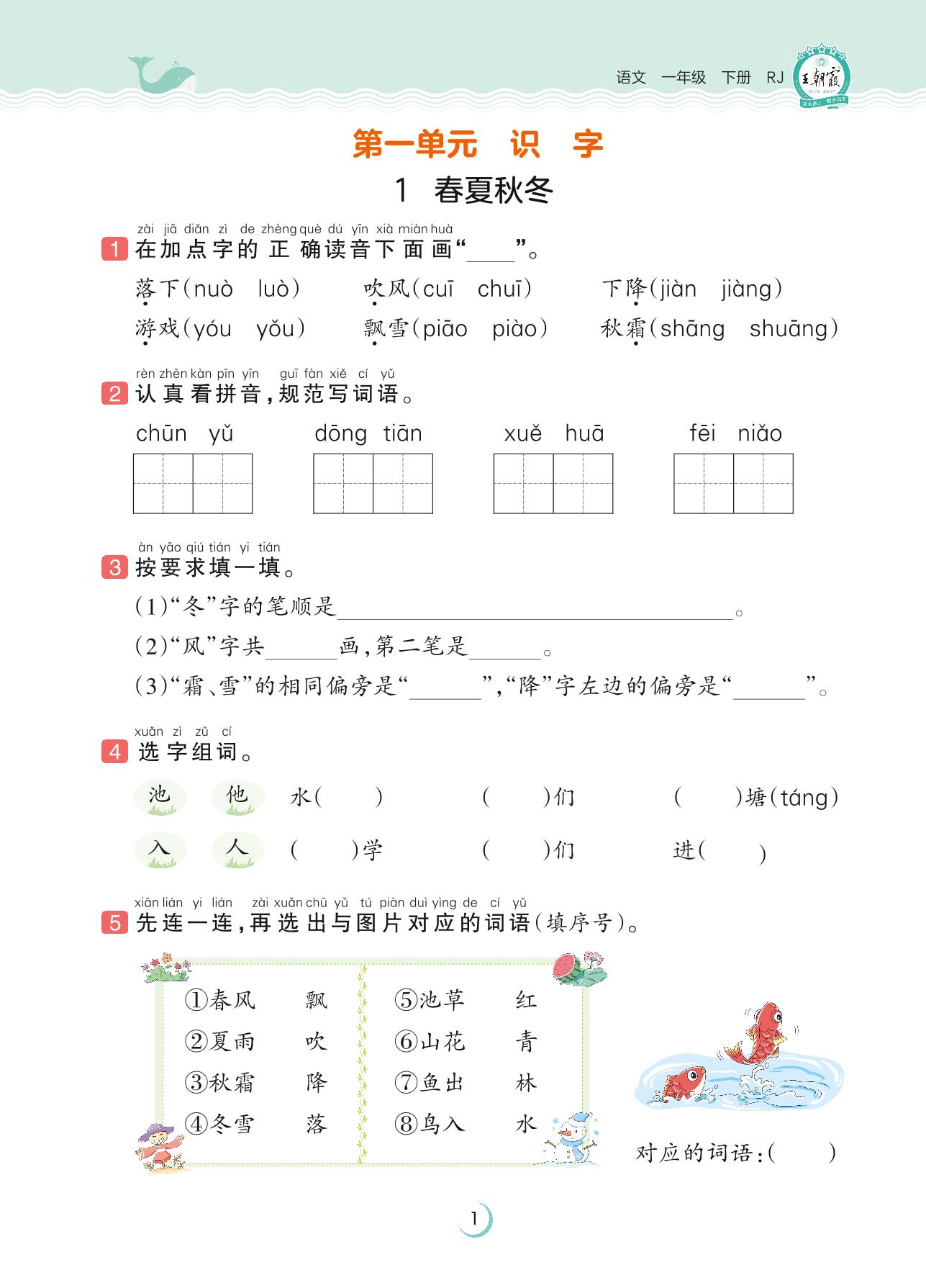 2023下册一年级语文人教版 第一单元 识字——1 春夏秋冬