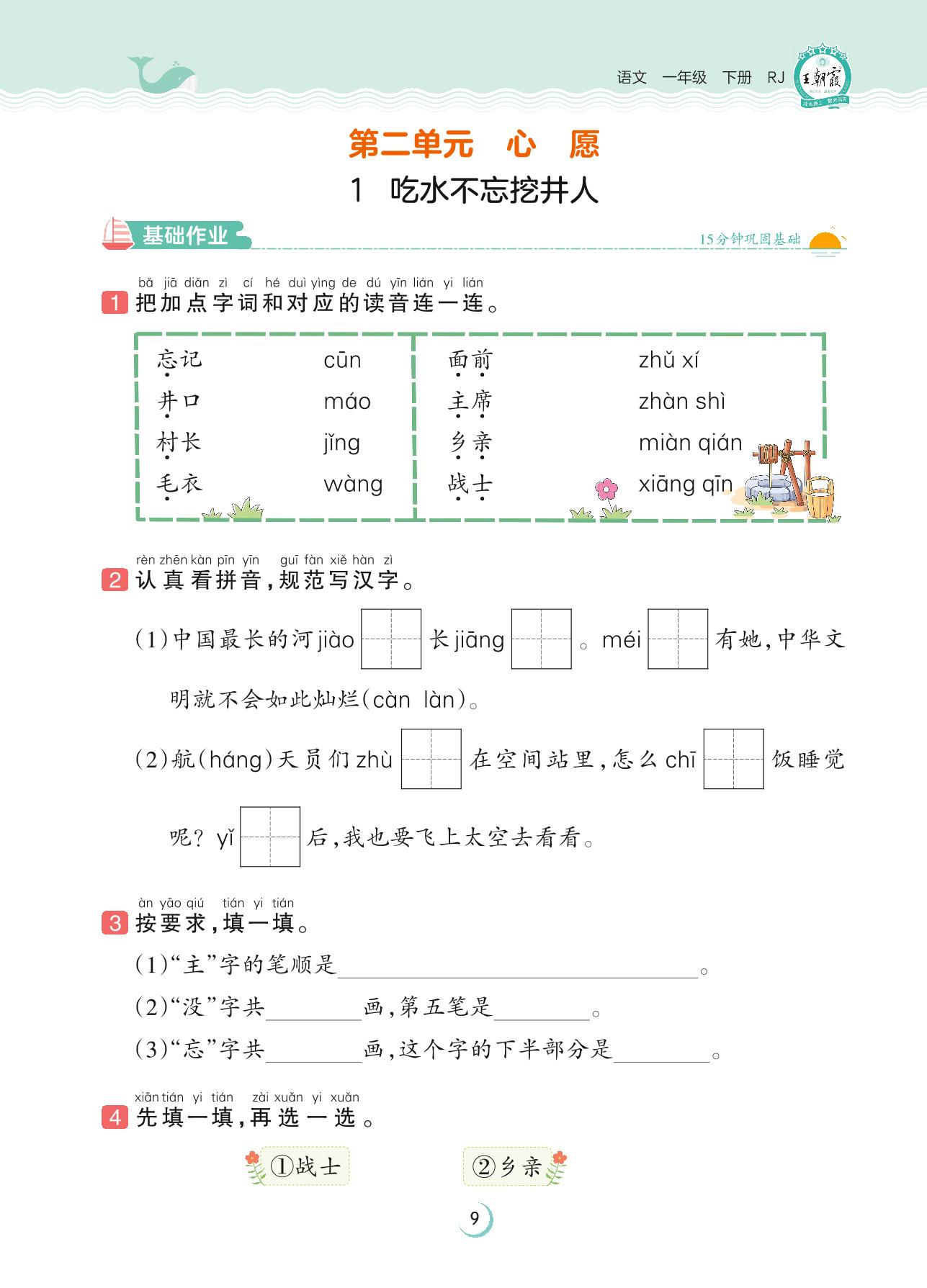 2023下册一年级语文人教版 第二单元 心愿——1 吃水不忘挖井人