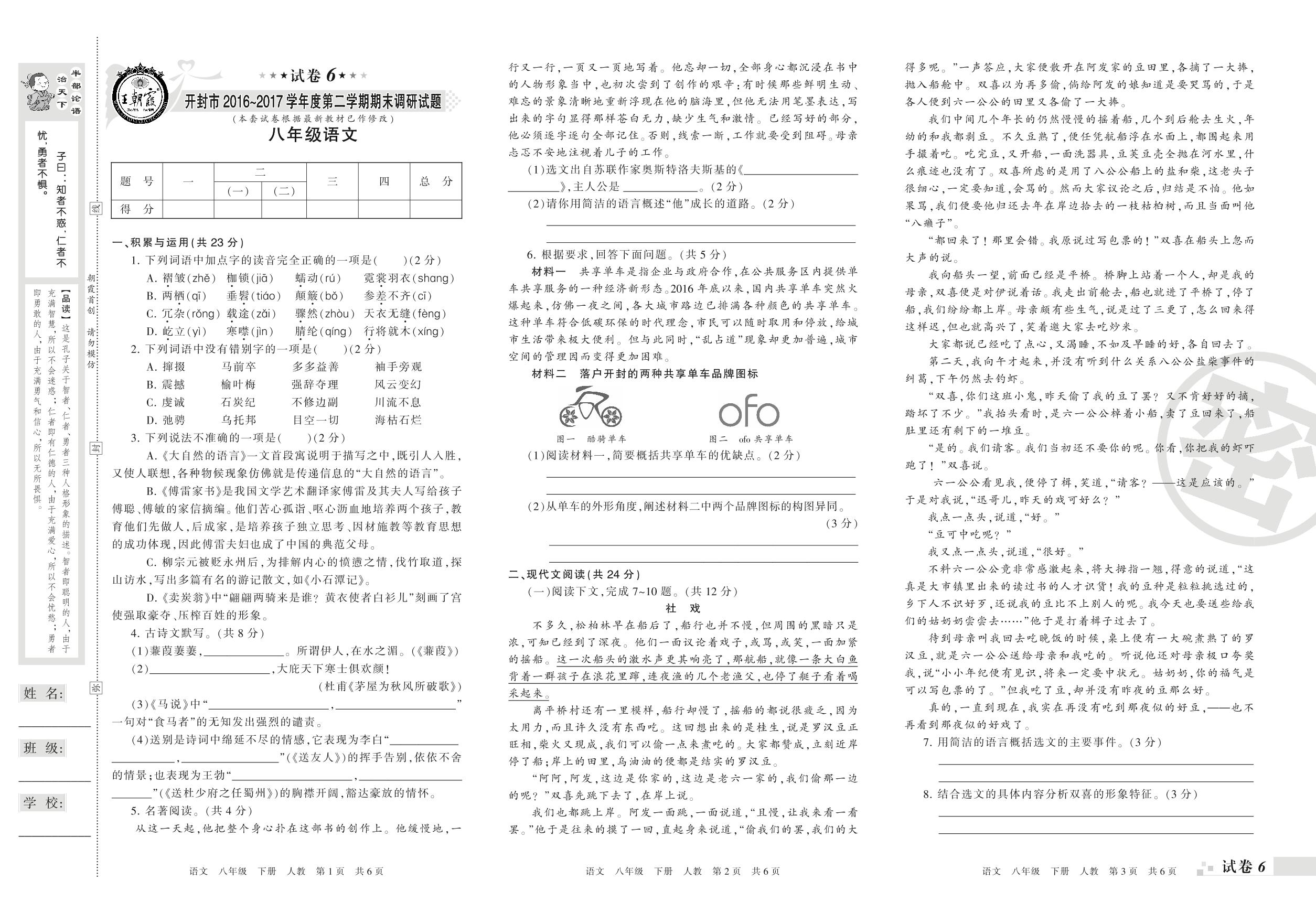 2016-2017学年第二学期开封市八年级语文试卷(人教版)_R210802185114【6】