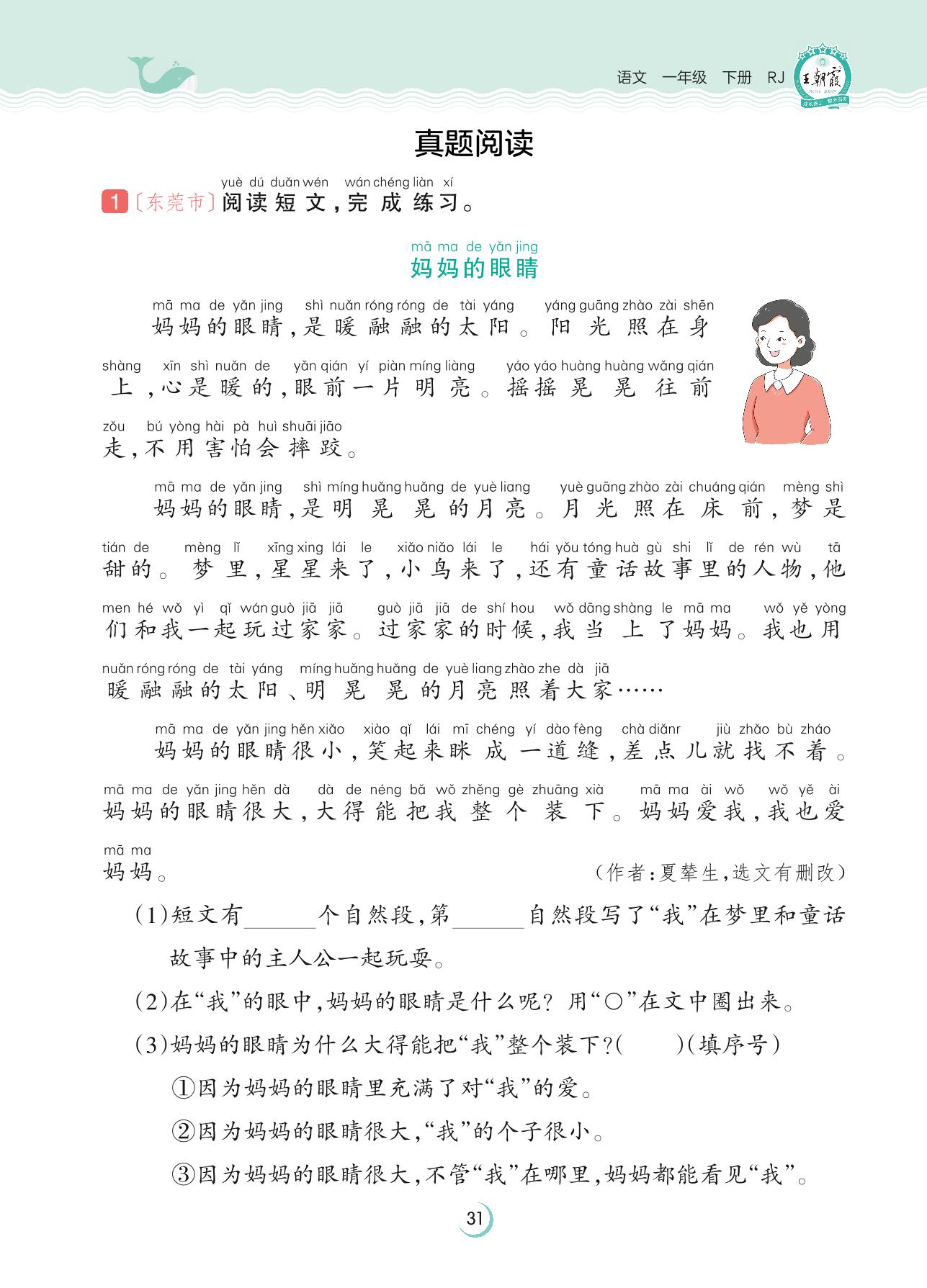 2023下册一年级语文人教版 第四单元 家人——真题阅读