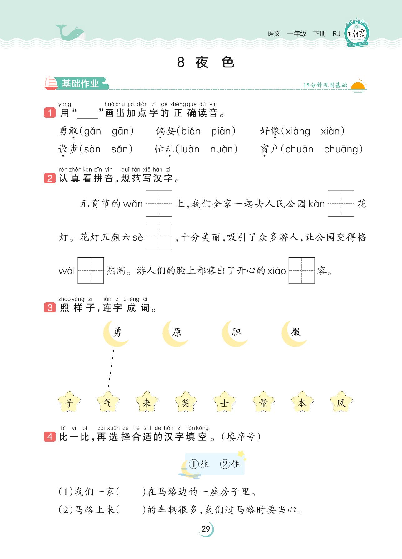2023下册一年级语文人教版 第四单元 家人——8 夜色