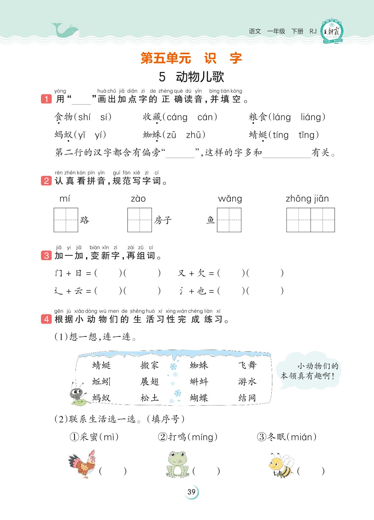 2023下册一年级语文人教版 第五单元 识字——5 动物儿歌