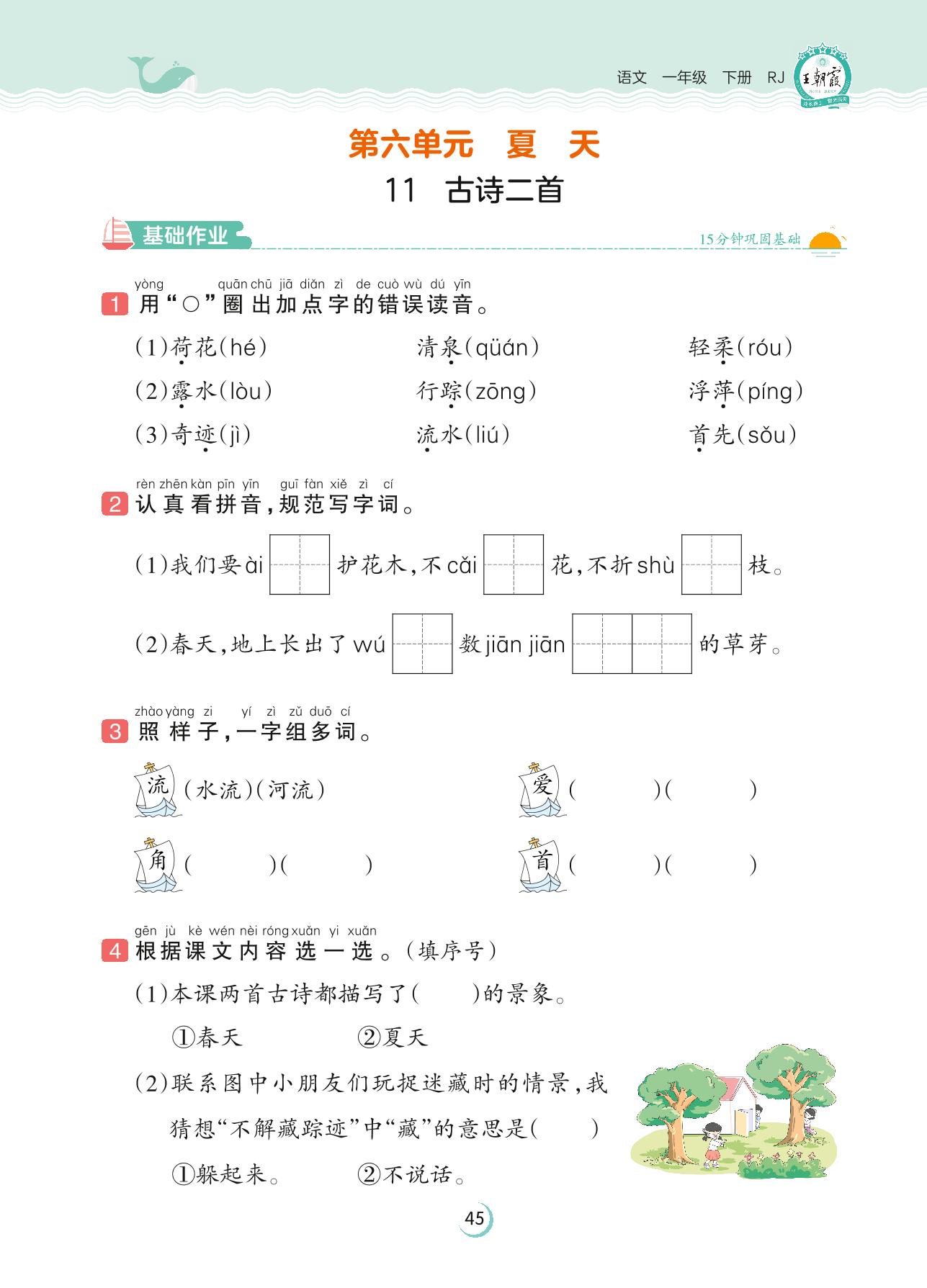 2023下册一年级语文人教版 第六单元 夏天——11 古诗二首