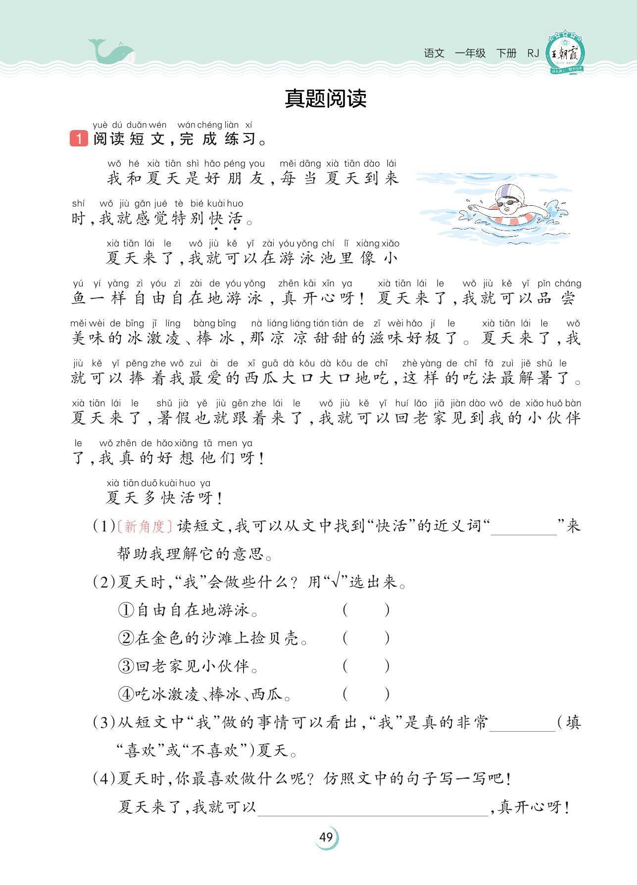 2023下册一年级语文人教版 第六单元 夏天——真题阅读