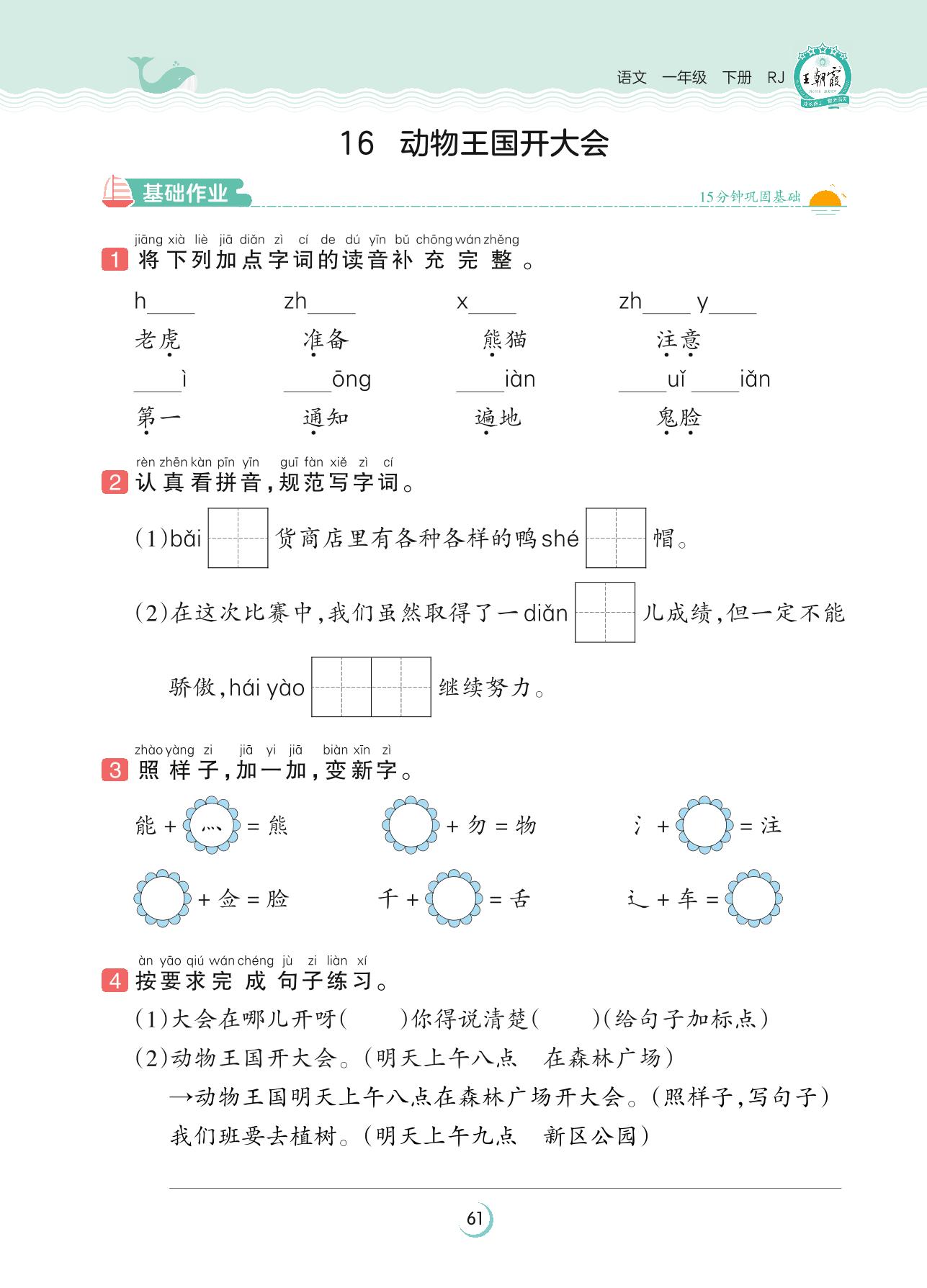 2023下册一年级语文人教版 第七单元 习惯——16 动物王国开大会