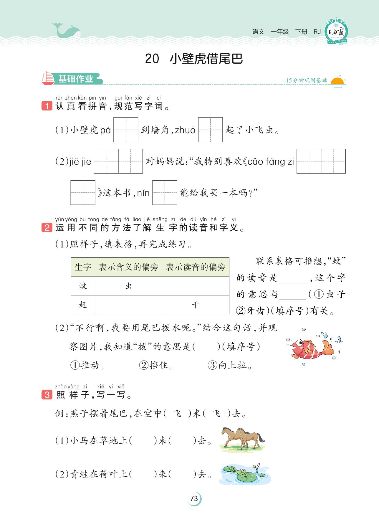2023下册一年级语文人教版 第八单元 问号——20 小壁虎借尾巴