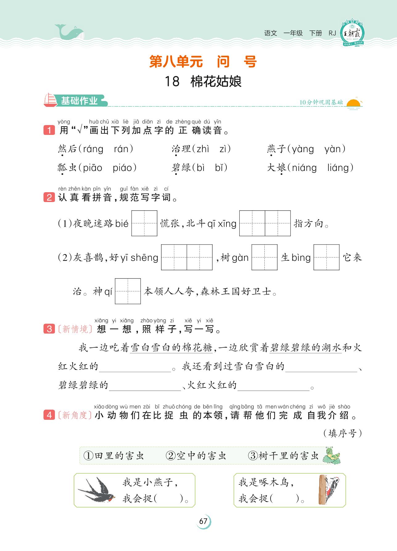 2023下册一年级语文人教版 第八单元 问号——18 棉花姑娘