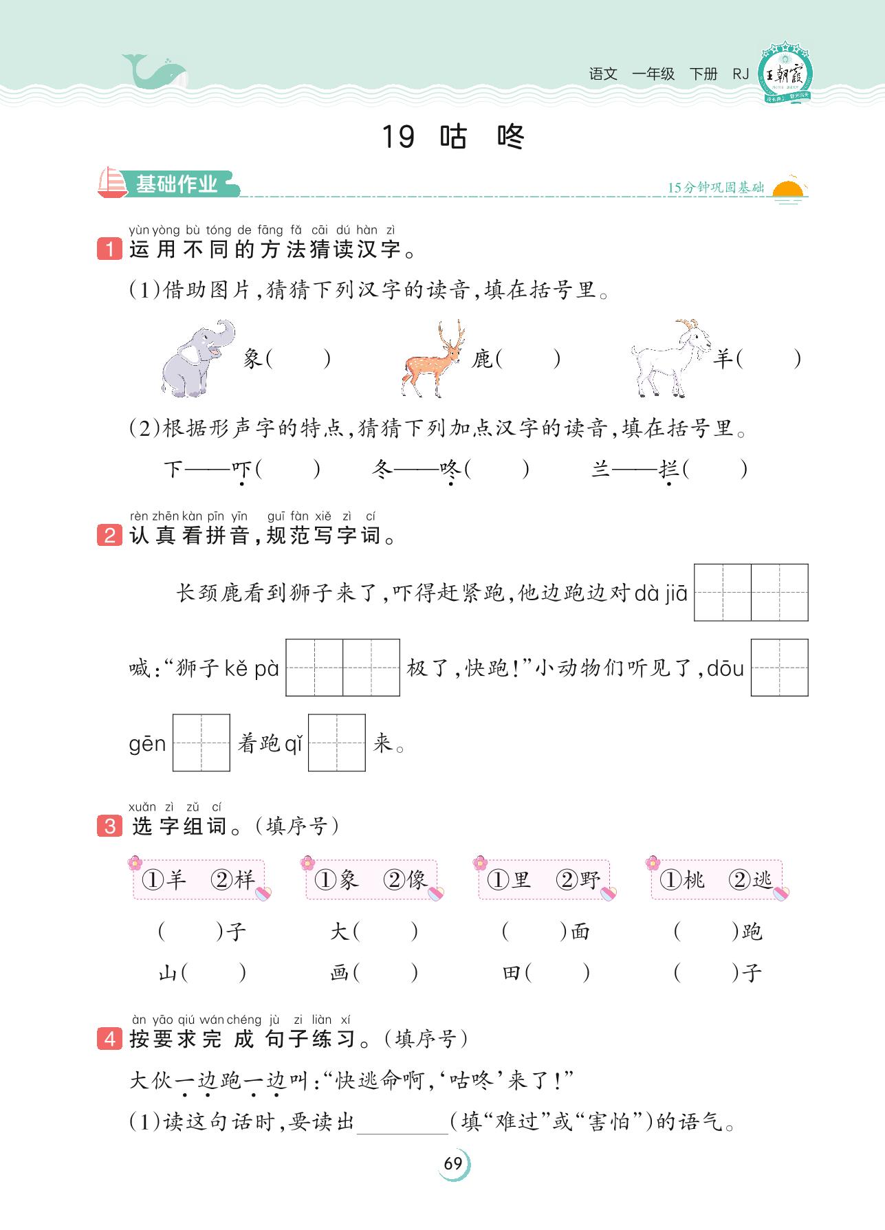 2023下册一年级语文人教版 第八单元 问号——19 咕咚
