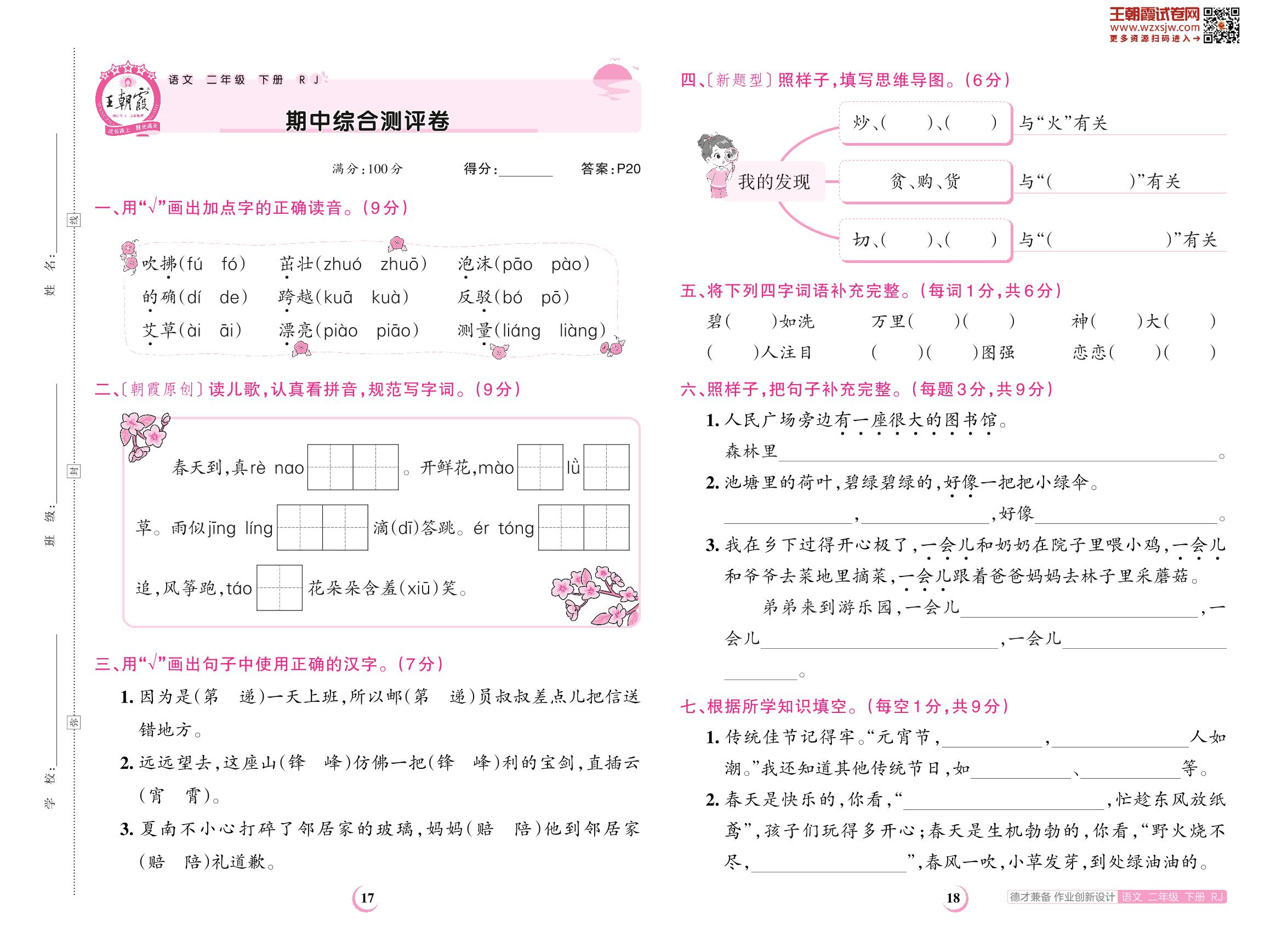 二年级语文人教版下册期中卷