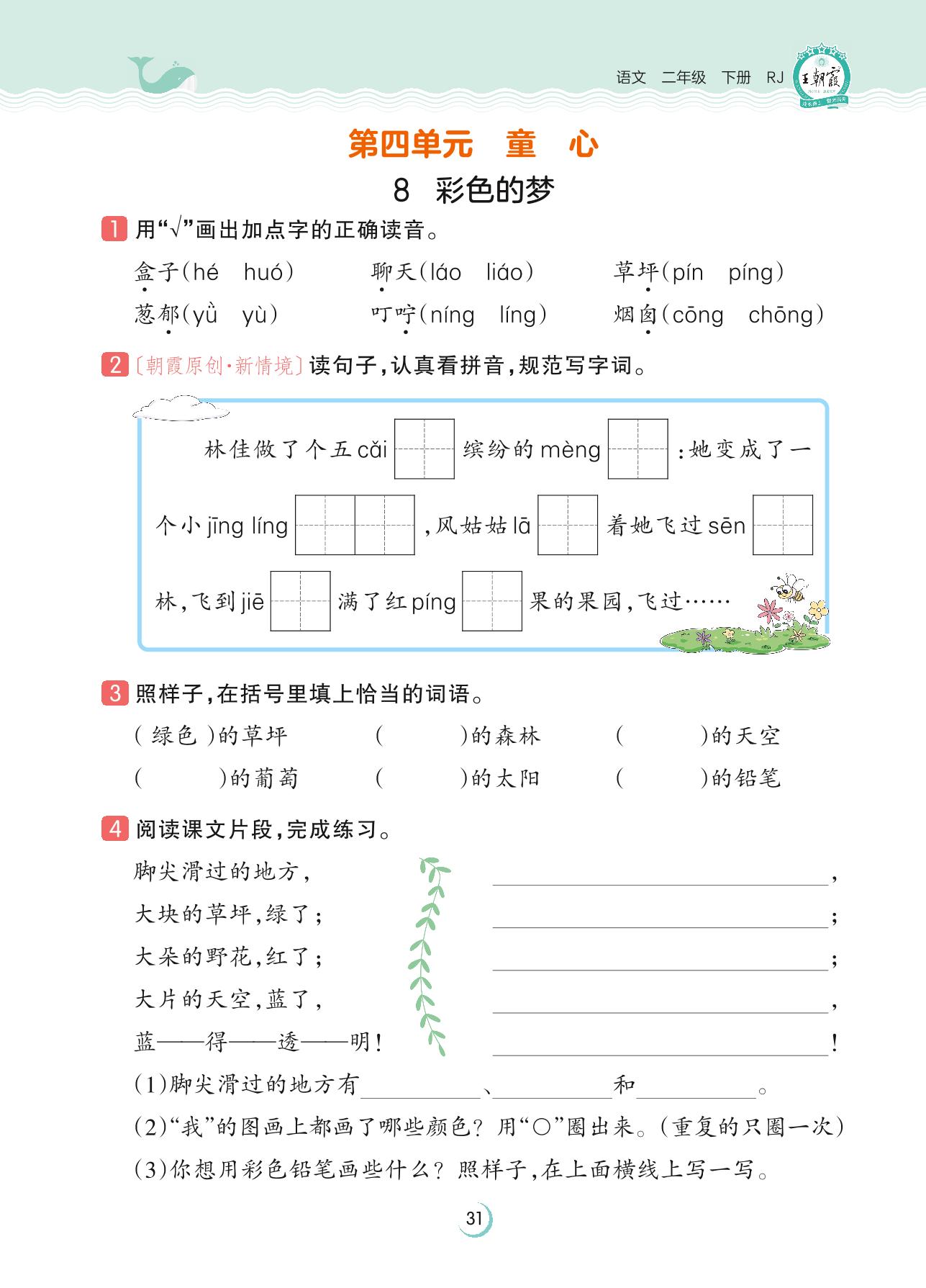 2023下册二年级语文人教版 第四单元 童心——8 彩色的梦
