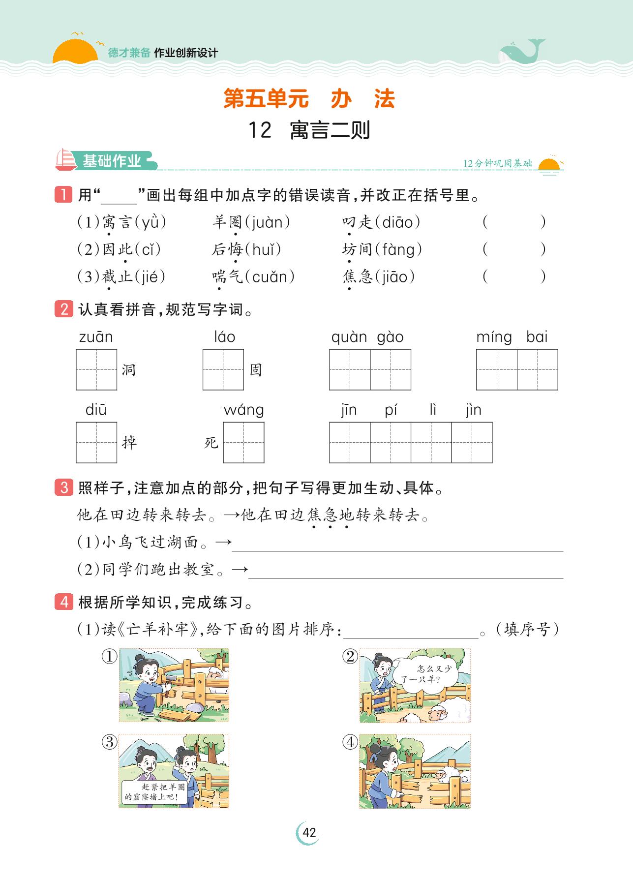 2023下册二年级语文人教版 第五单元 办法——12 寓言二则