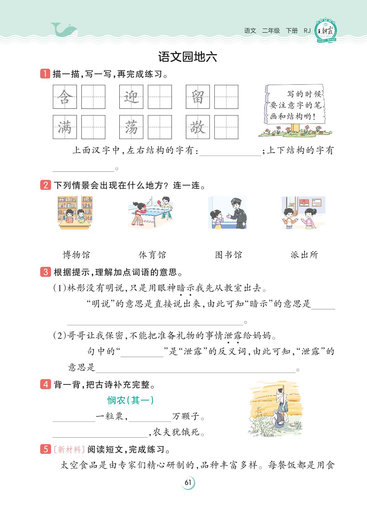 2023下册二年级语文人教版 第六单元 大自然的秘密——语文园地六