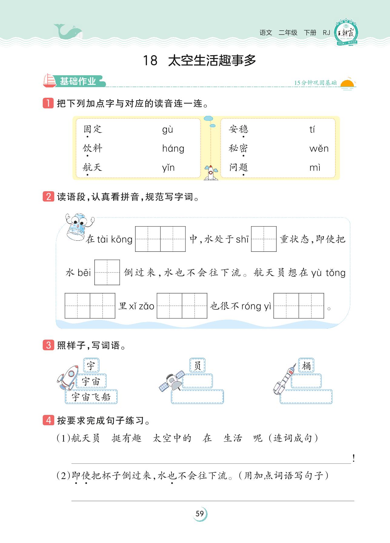 2023下册二年级语文人教版 第六单元 大自然的秘密——18 太空生活趣事多