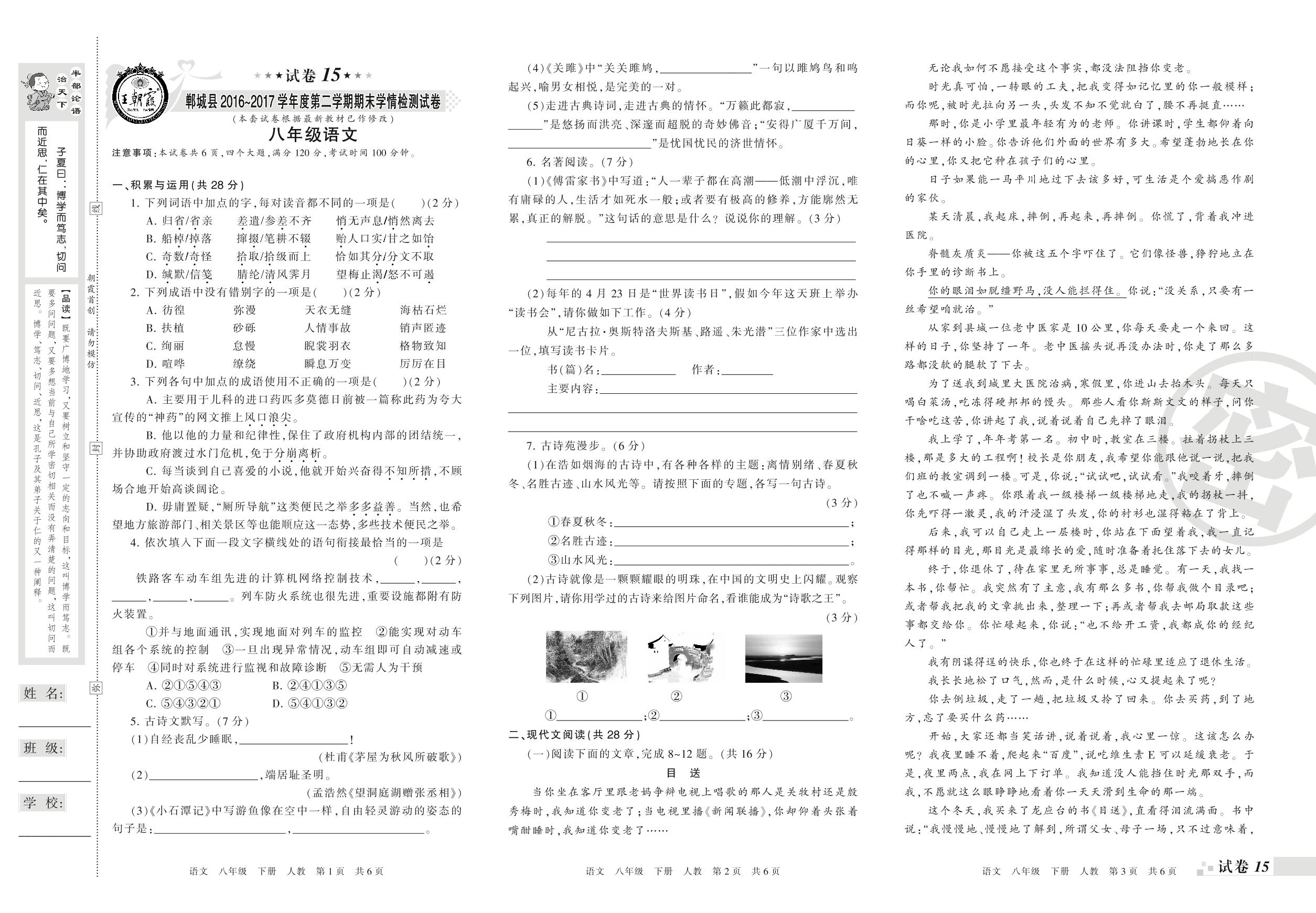 2016-2017学年第二学期周口市郸城县八年级语文试卷(人教版)【15】