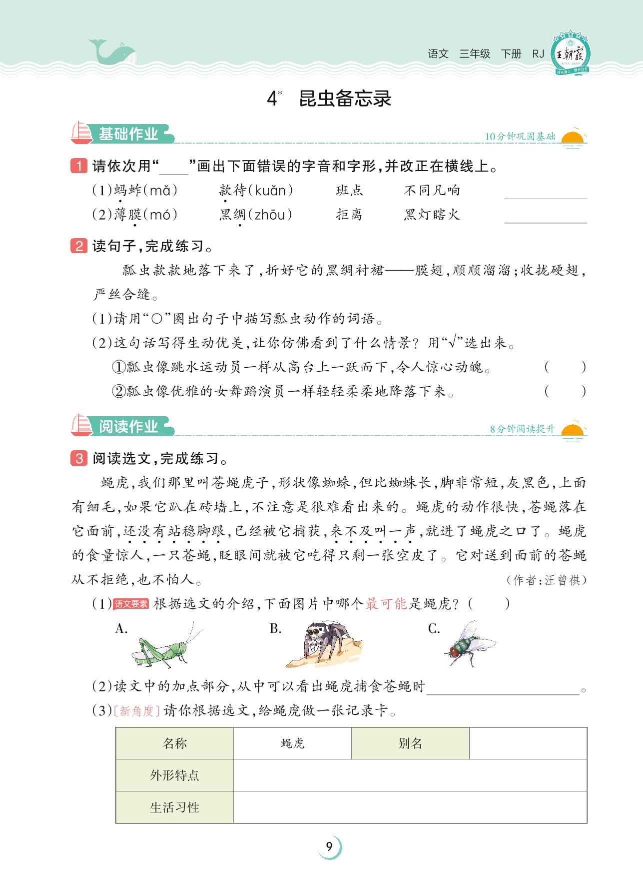 2023下册三年级语文人教版 第一单元 可爱的生灵——4 昆虫备忘录