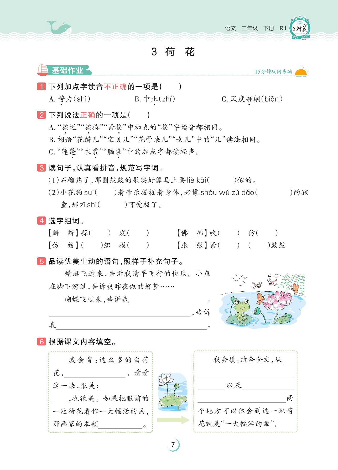 2023下册三年级语文人教版 第一单元 可爱的生灵——3 荷花