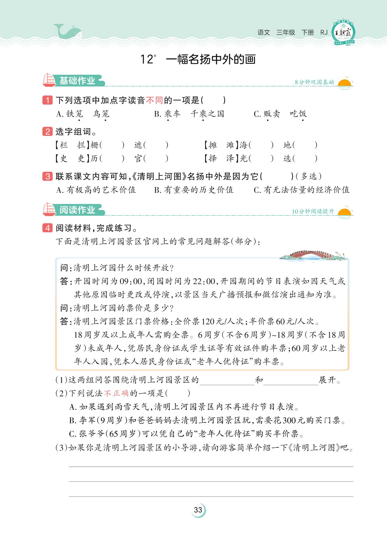 2023下册三年级语文人教版 第三单元 中华优秀传统文化——12 一幅名扬中外的画