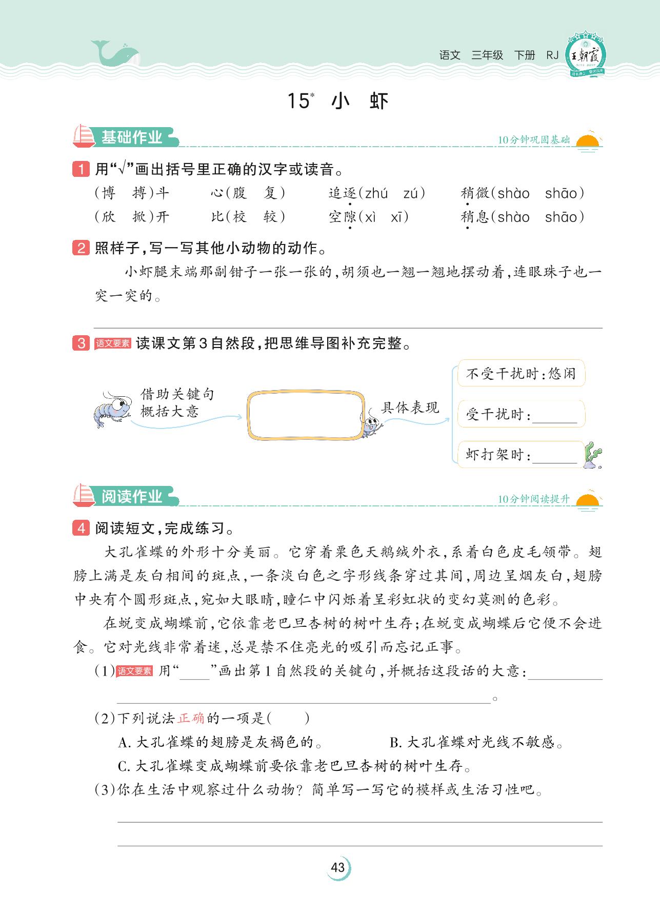 2023下册三年级语文人教版 第四单元 观察与发现——15 小虾