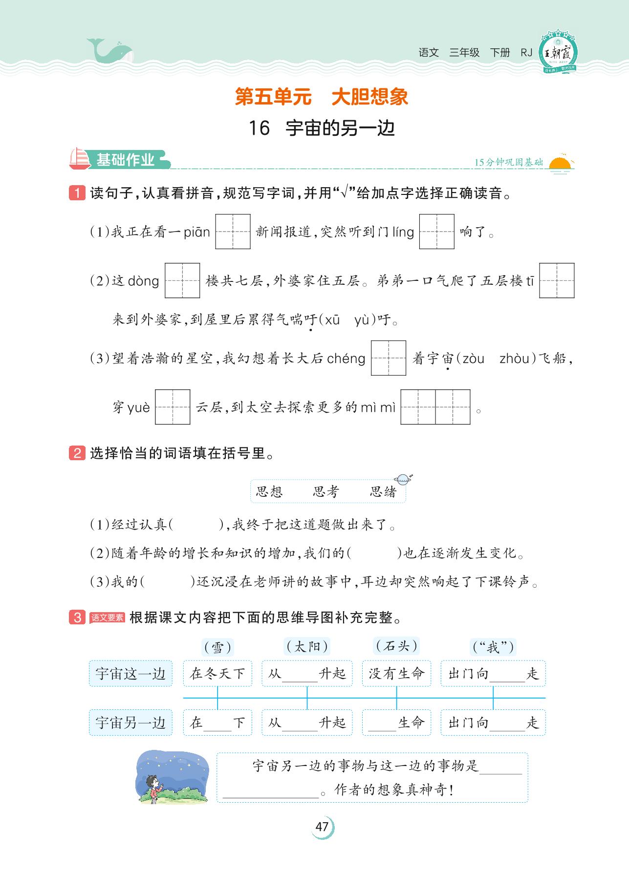 2023下册三年级语文人教版 第五单元 大胆想象——16 宇宙的另一边