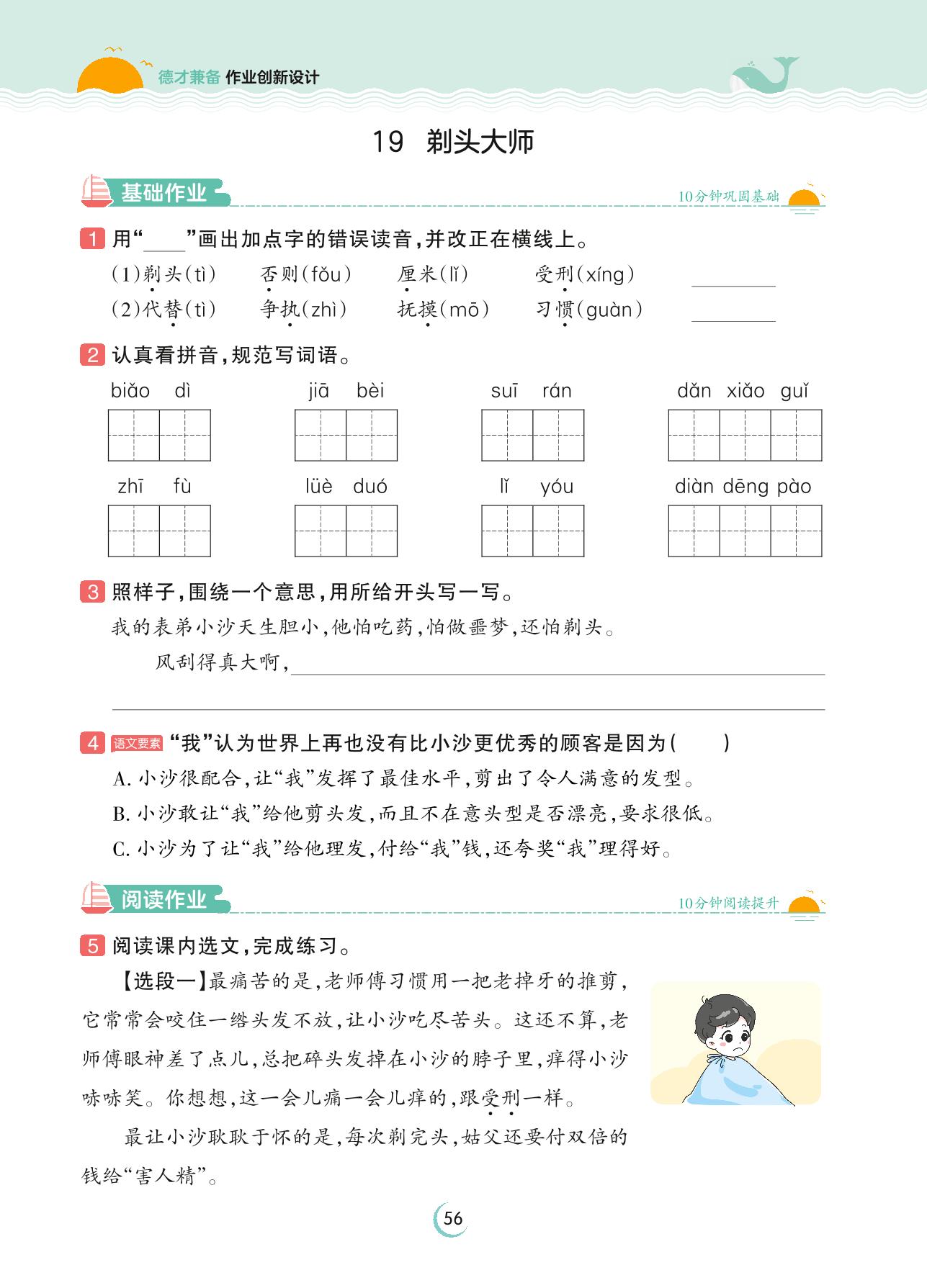 2023下册三年级语文人教版 第六单元 多彩童年——19 剃头大师
