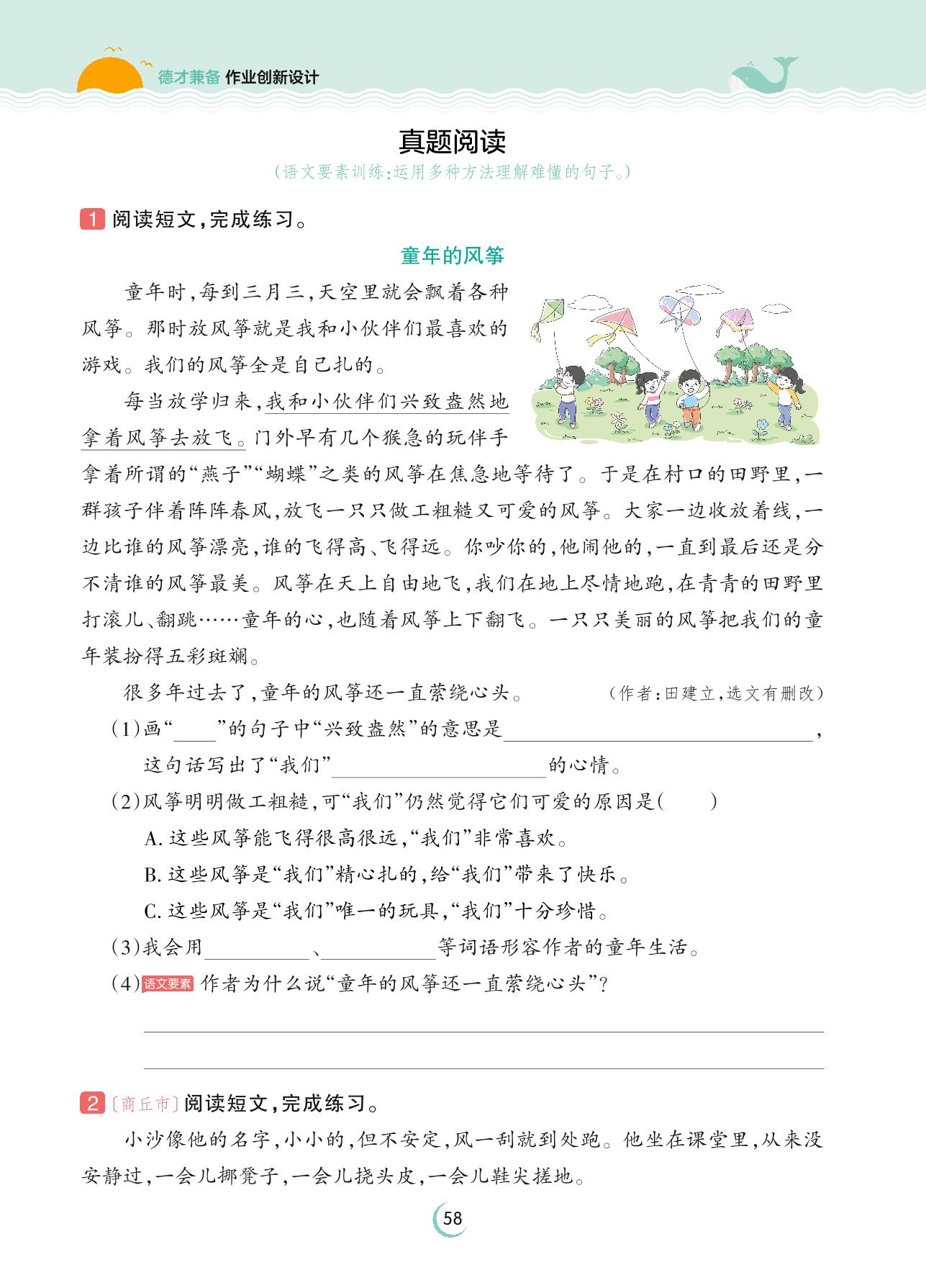 2023下册三年级语文人教版 第六单元 多彩童年——真题阅读(语文要素训练)
