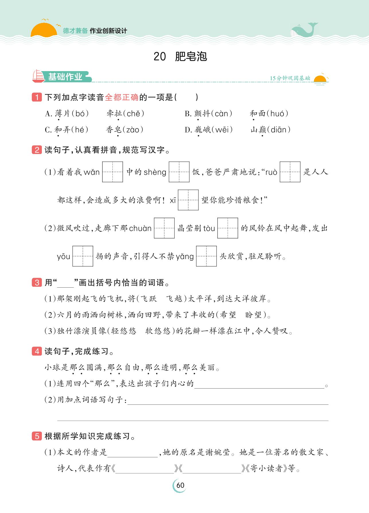 2023下册三年级语文人教版 第六单元 多彩童年——20 肥皂泡