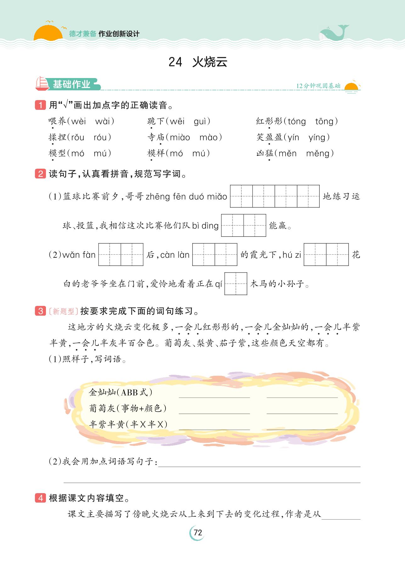 2023下册三年级语文人教版 第七单元 奇妙的世界——24 火烧云