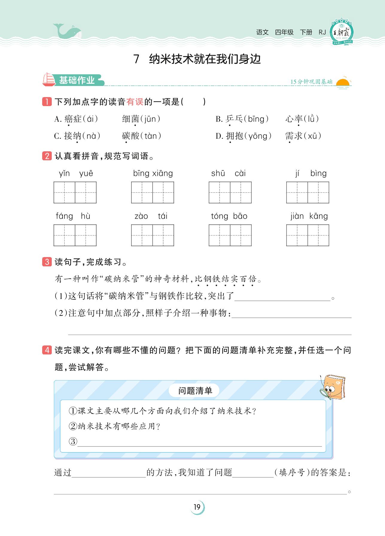 2023下册四年级语文人教版 第二单元 自然、科技——7 纳米技术就在我们身边