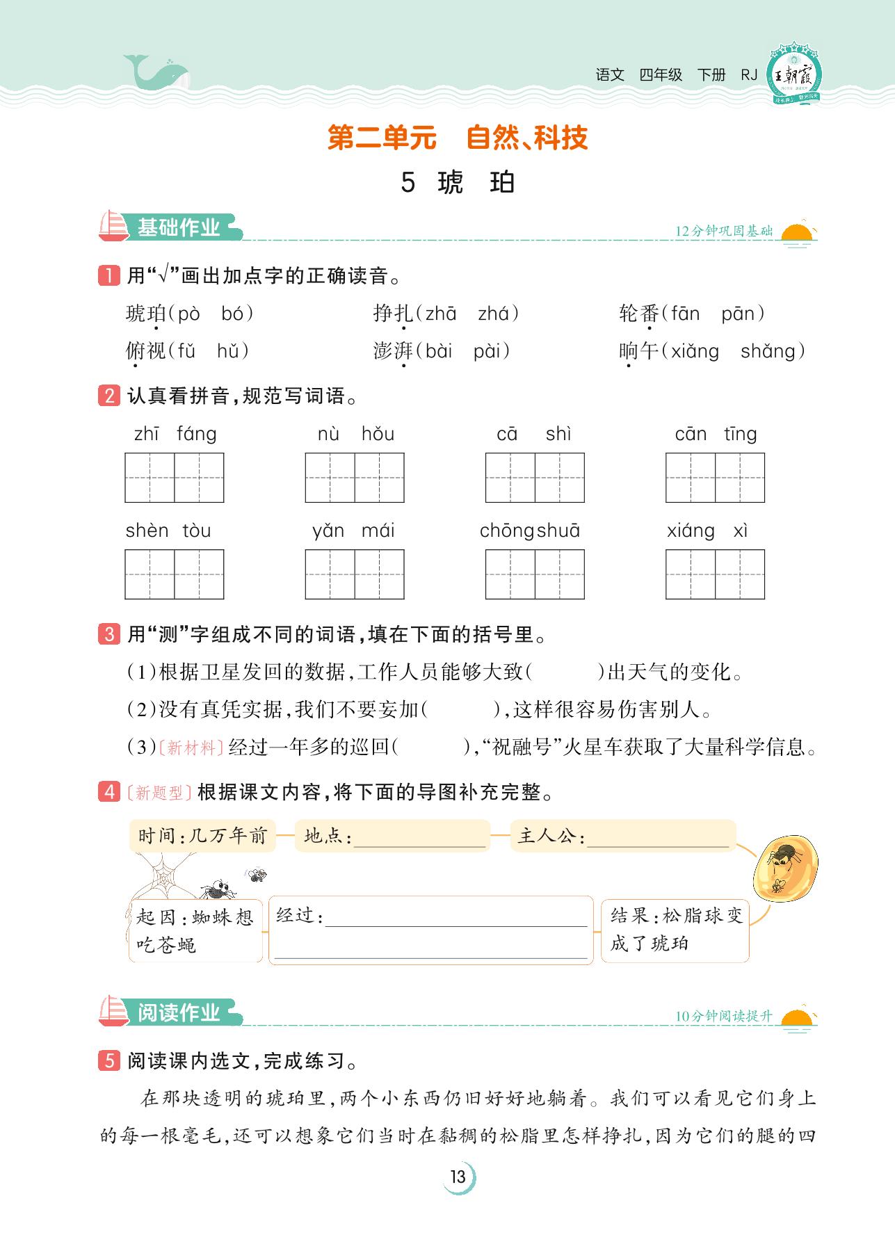 2023下册四年级语文人教版 第二单元 自然、科技——5 琥珀