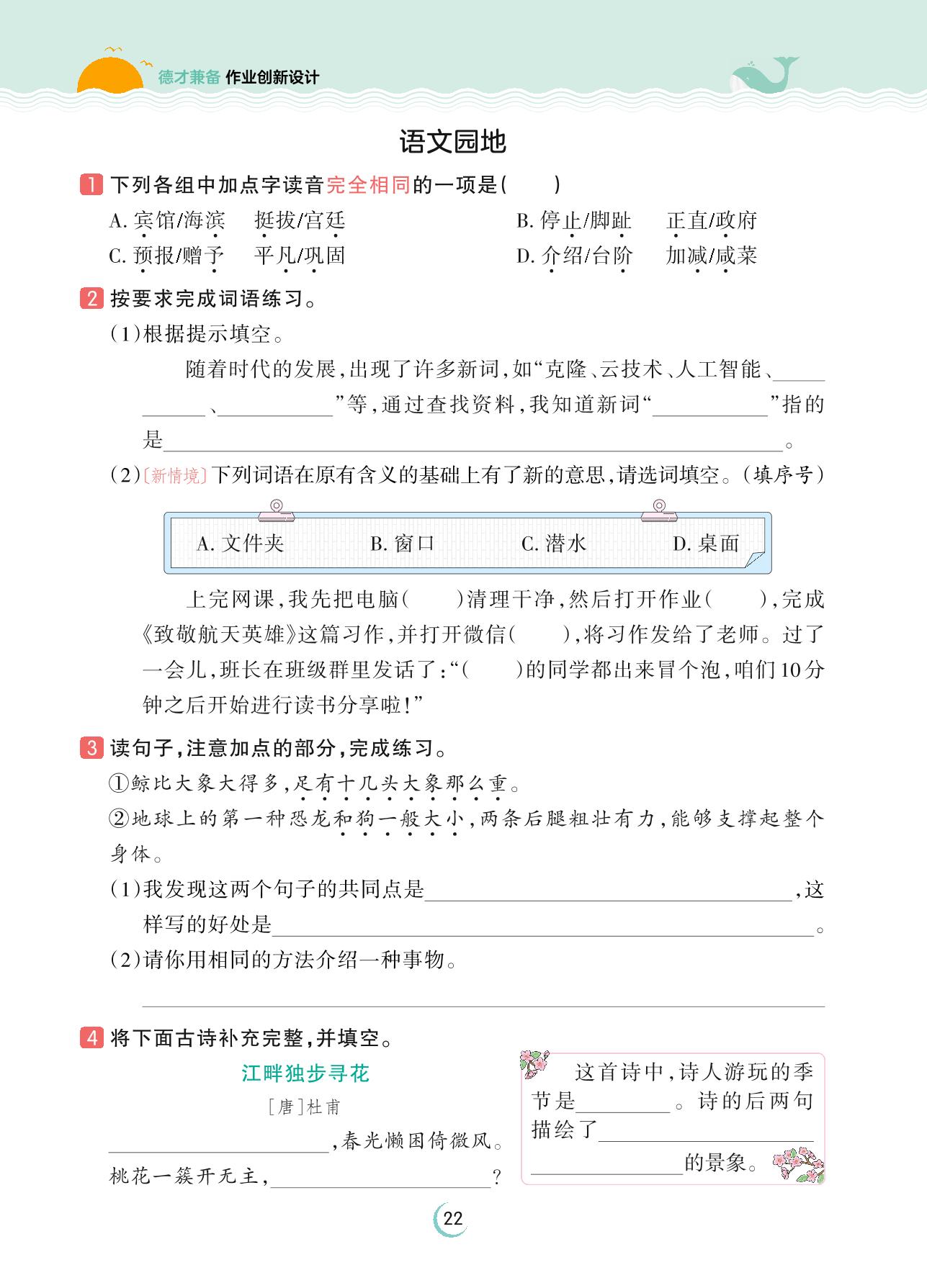 2023下册四年级语文人教版 第二单元 自然、科技——语文园地