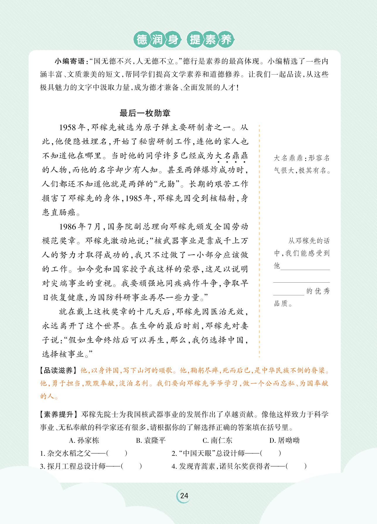 2023下册四年级语文人教版 第二单元 自然、科技——德润身 提素养(学科素养落地)