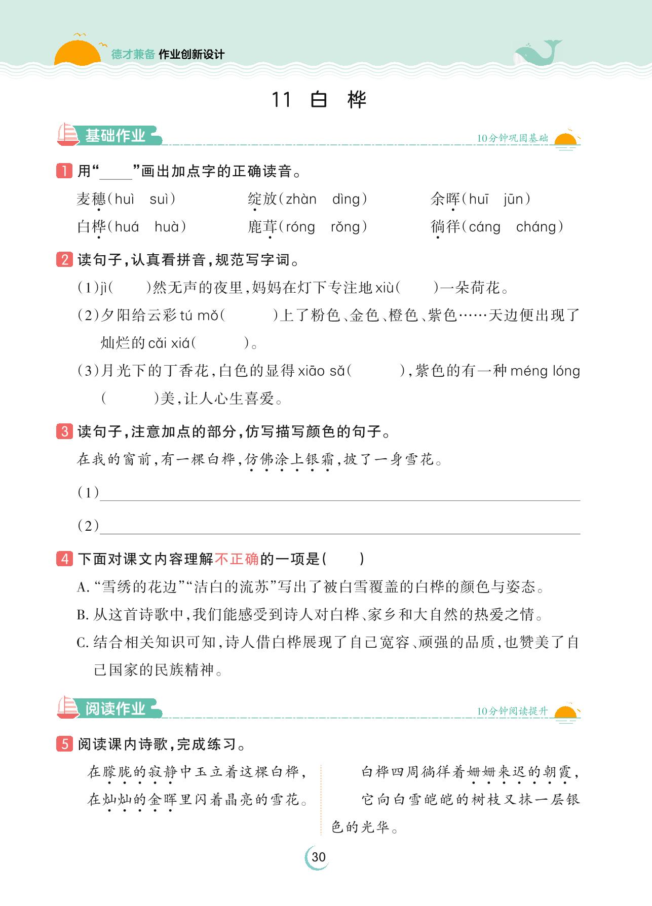2023下册四年级语文人教版 第三单元 现代诗歌——11 白桦