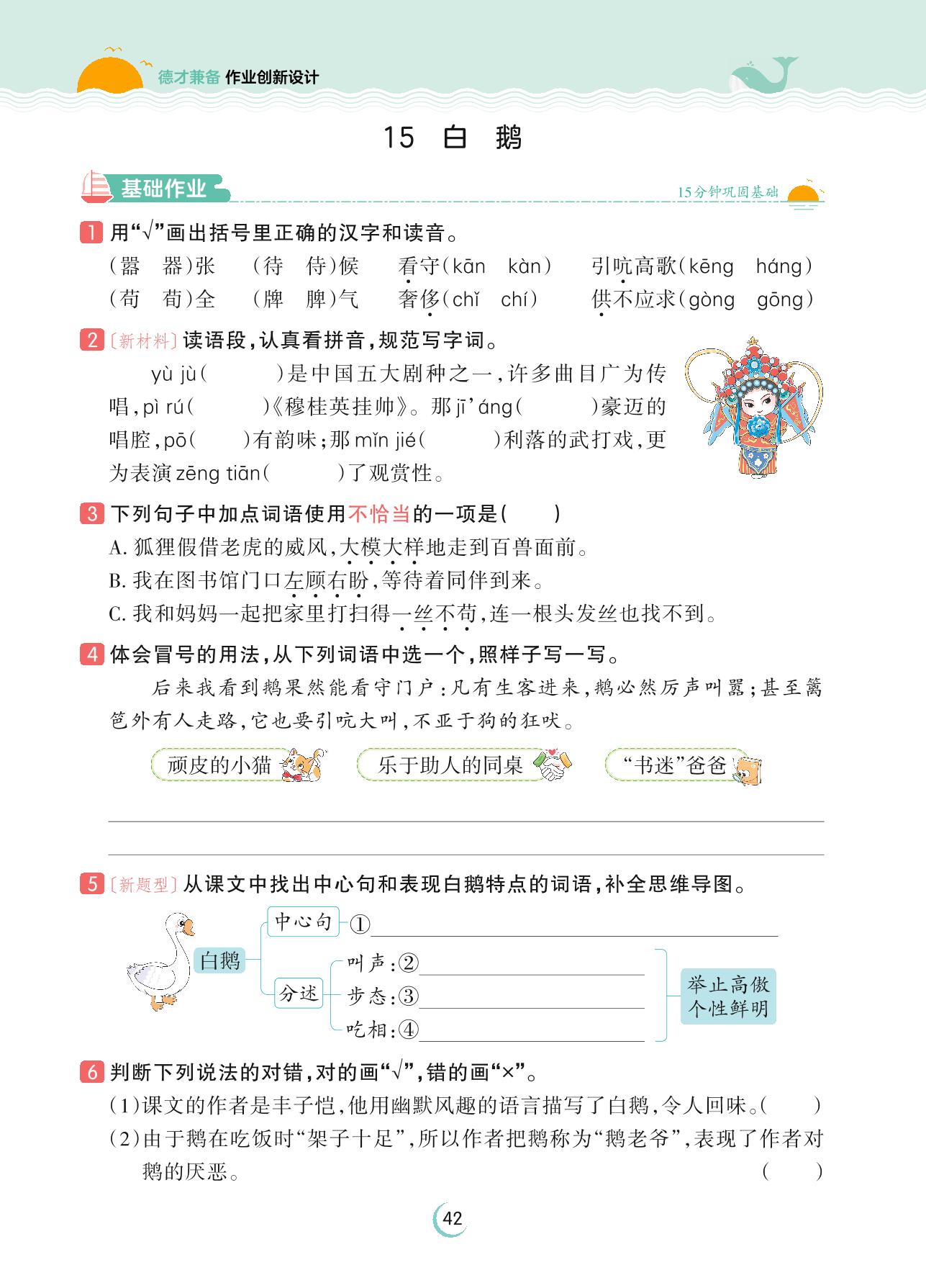 2023下册四年级语文人教版 第四单元 作家笔下的动物——15 白鹅