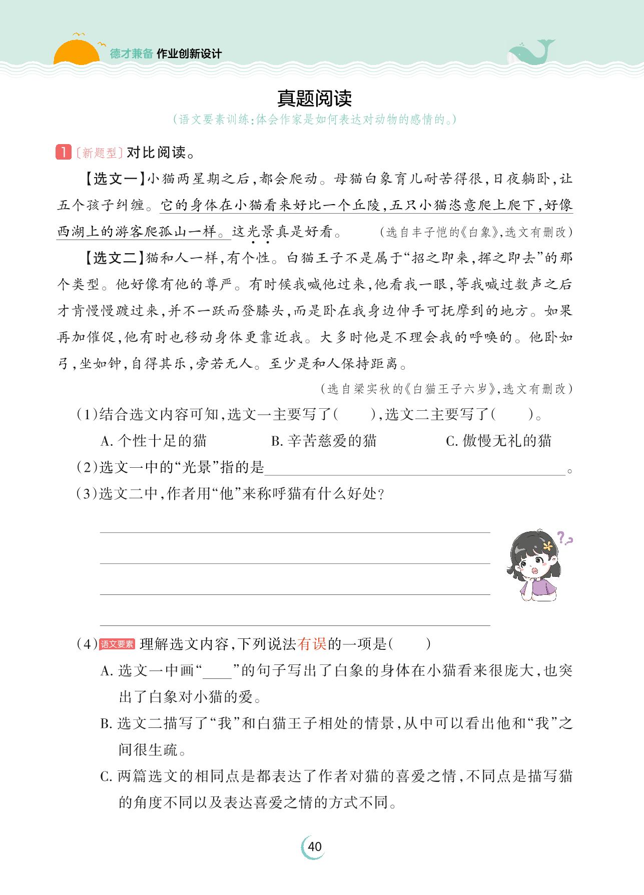 2023下册四年级语文人教版 第四单元 作家笔下的动物——真题阅读(语文要素训练)