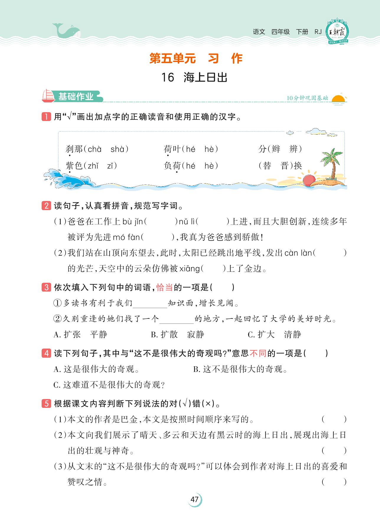 2023下册四年级语文人教版 第五单元 习作——16 海上日出