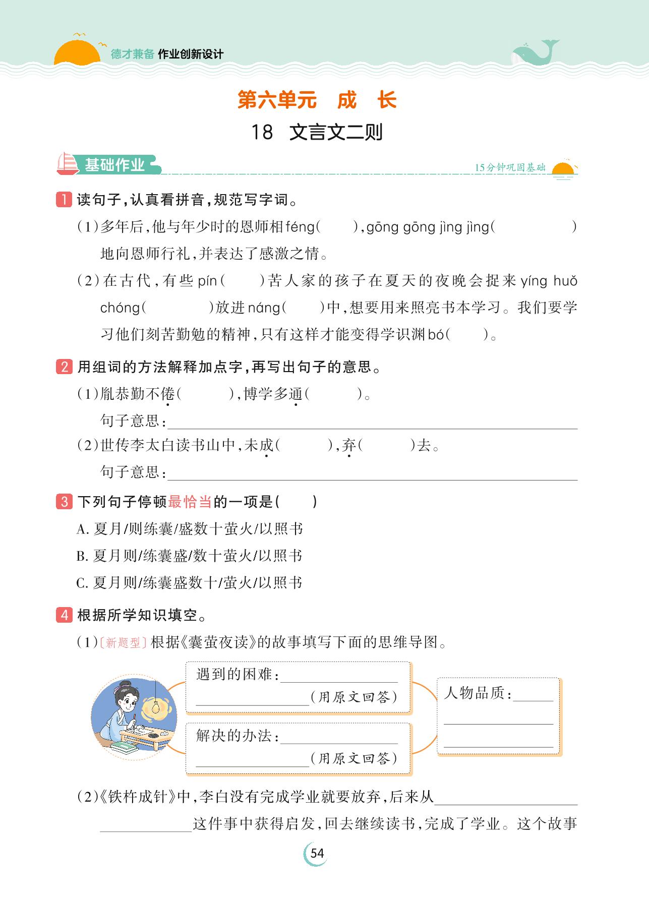 2023下册四年级语文人教版 第六单元 成长——18 文言文二则