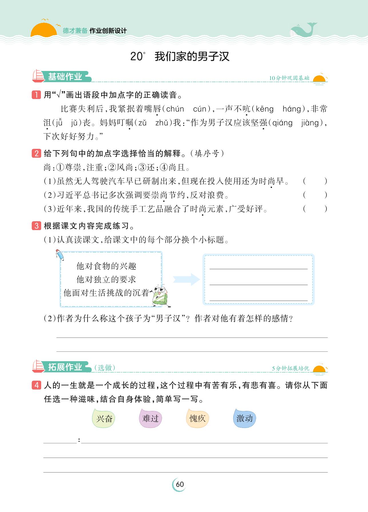 2023下册四年级语文人教版 第六单元 成长——20 我们家的男子汉