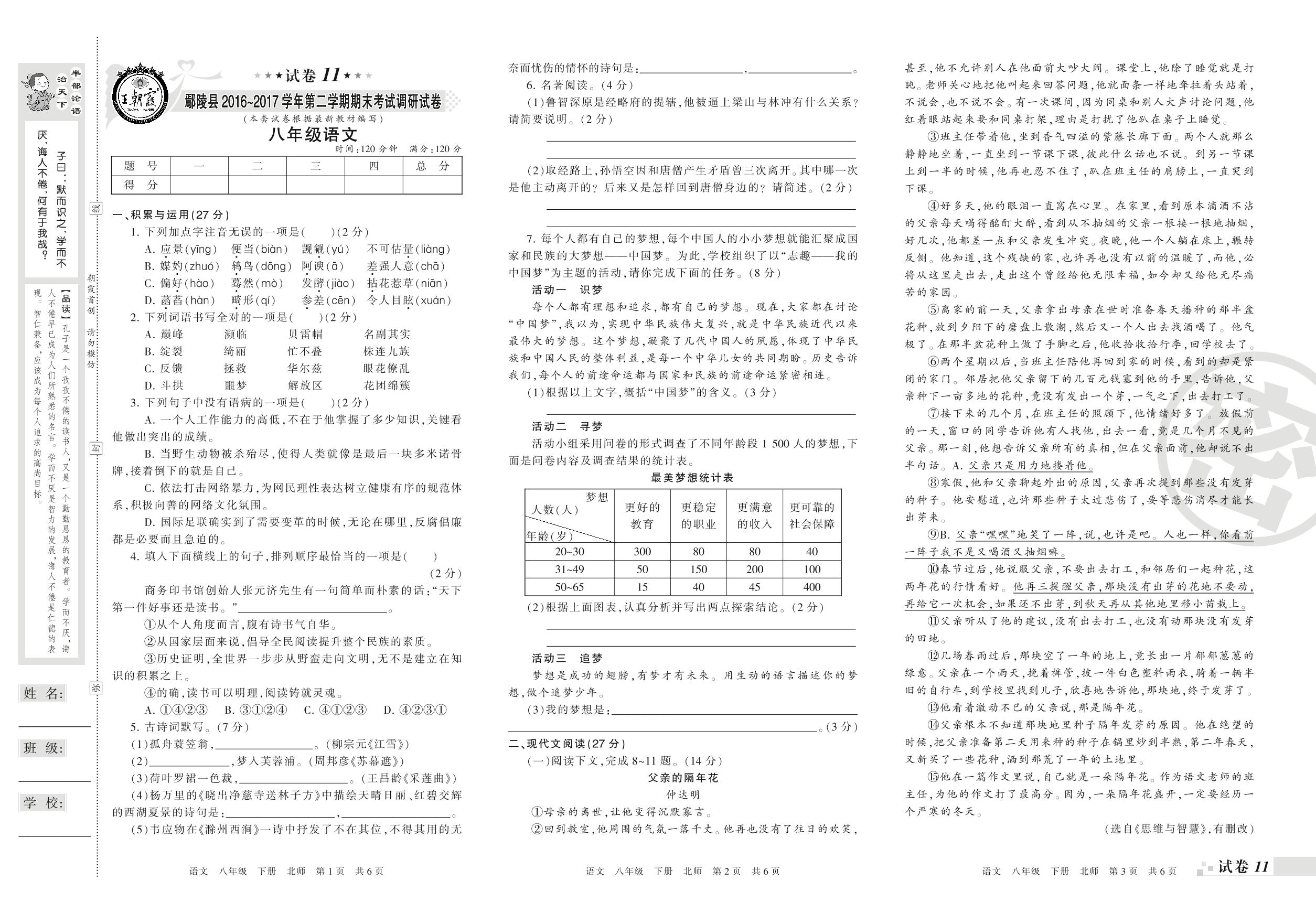 2016-2017学年第二学期许昌市鄢陵县八年级语文试卷(北师版)【11】