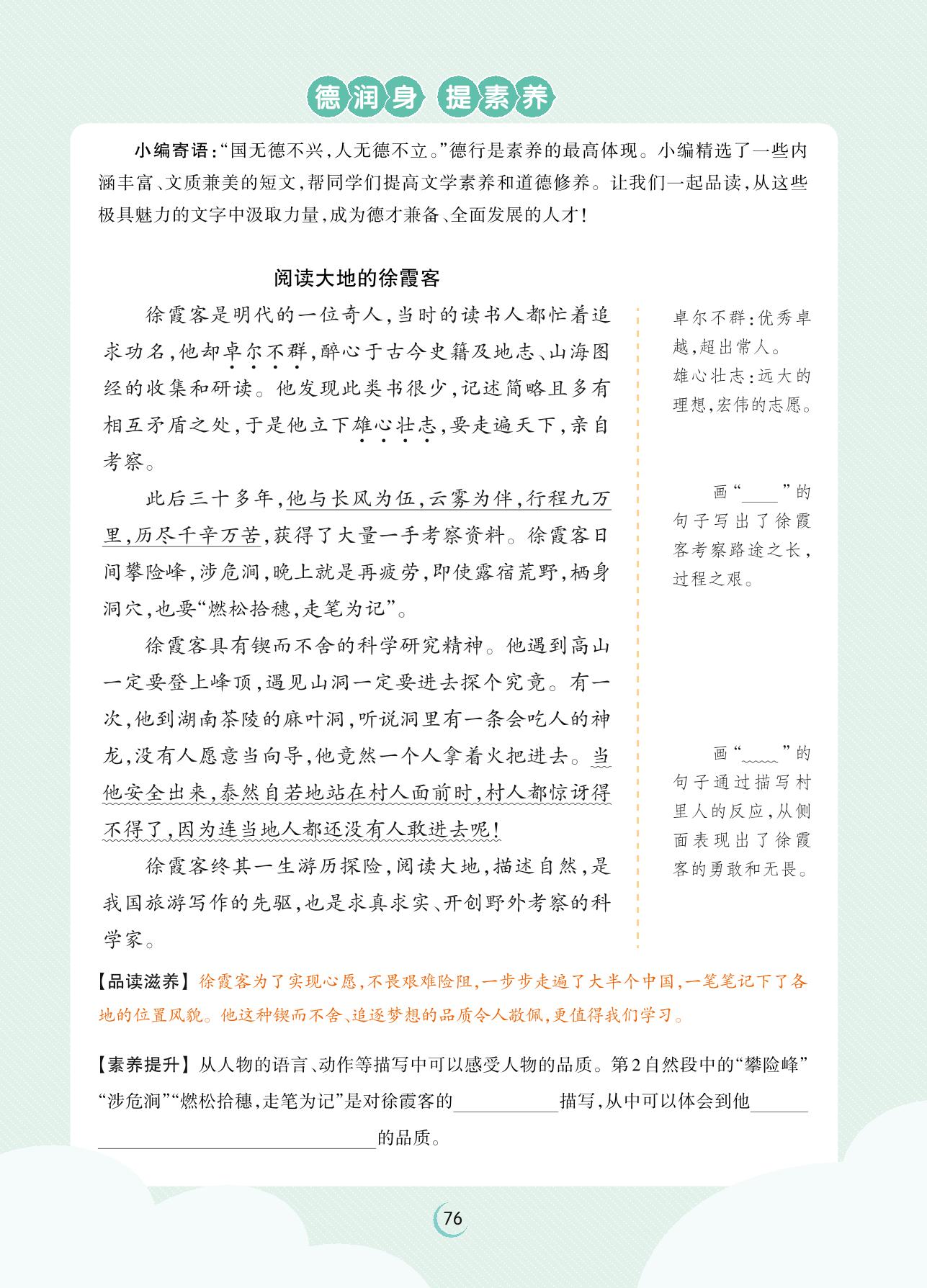 2023下册四年级语文人教版 第七单元 人物品质——德润身 提素养(学科素养落地)
