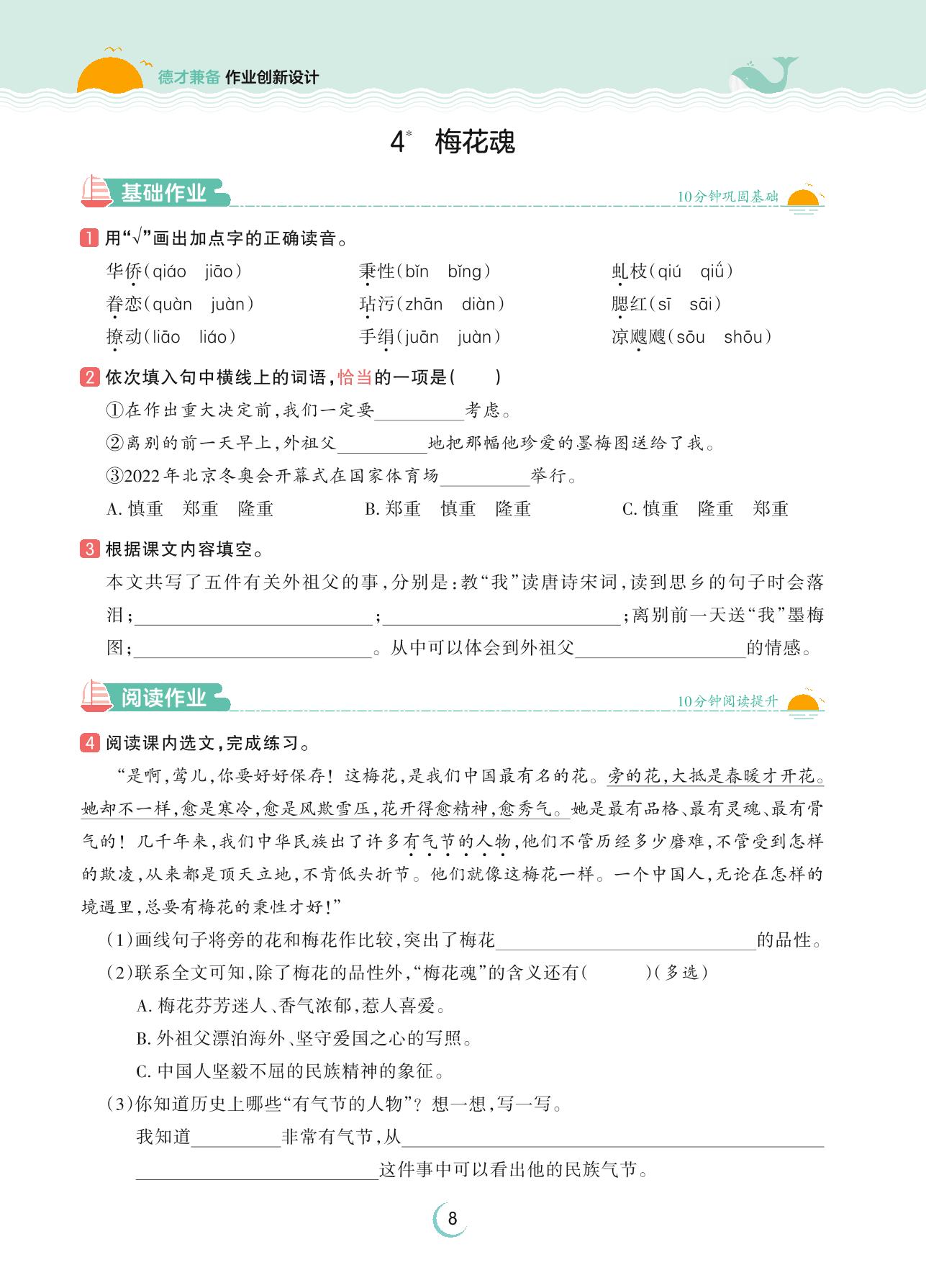 2023下册五年级语文人教版 第一单元 童年往事——4 梅花魂